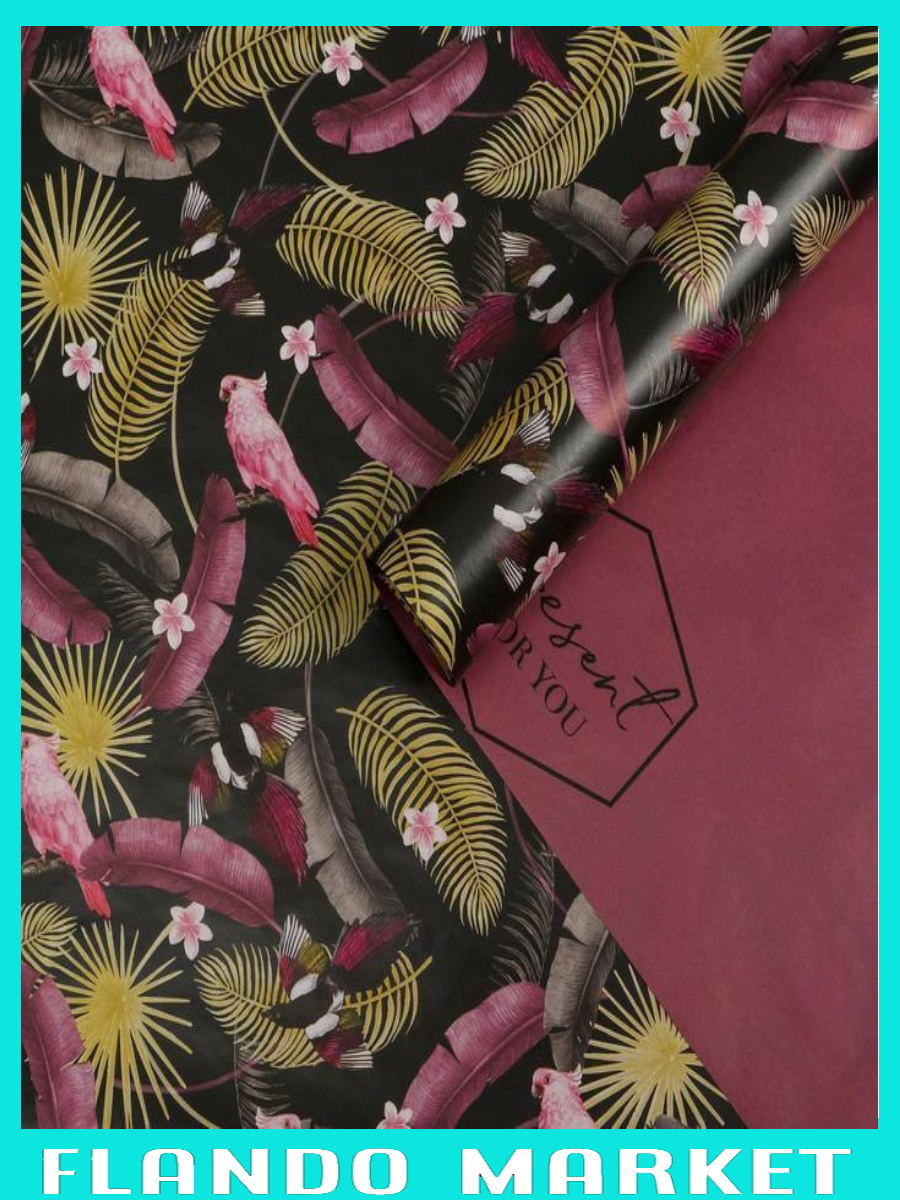 !09 Бумага упаковочная (набор 4 листа) глянцевая двусторонняя «Тропики», 70 × 100 см.