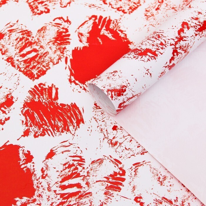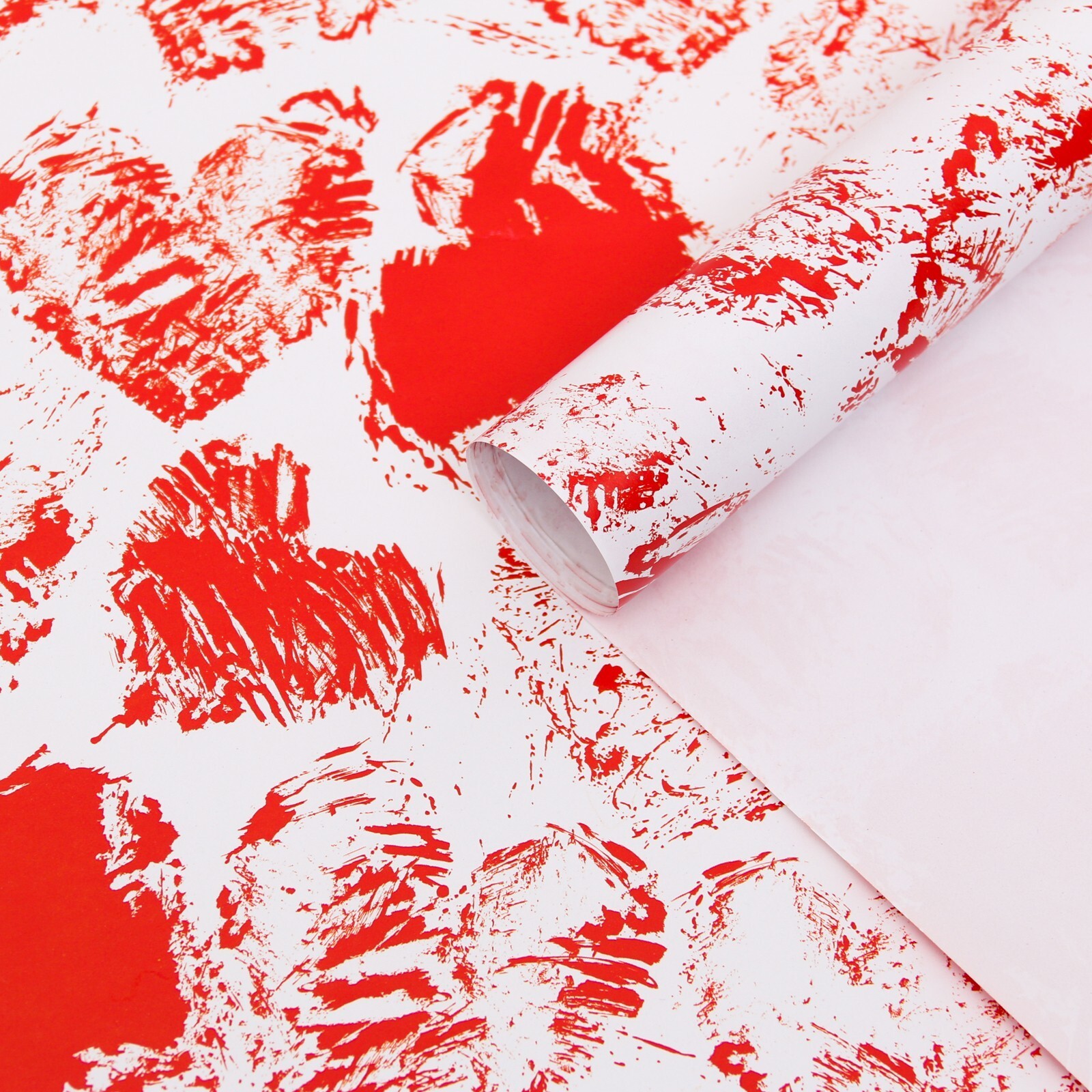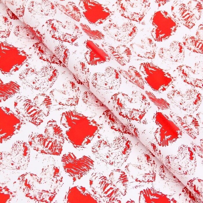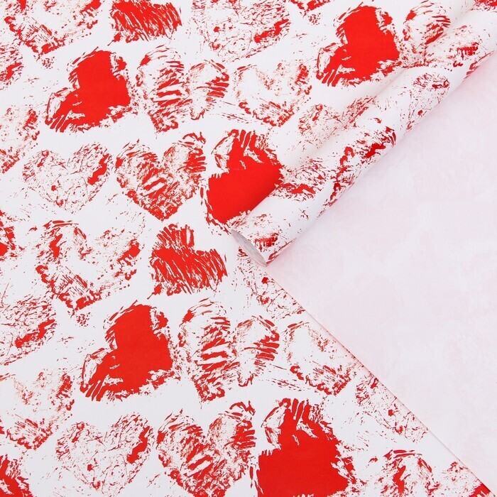 !09 Бумага упаковочная 2 листа глянцевая "Сердечки" , 100 х 70 см.
