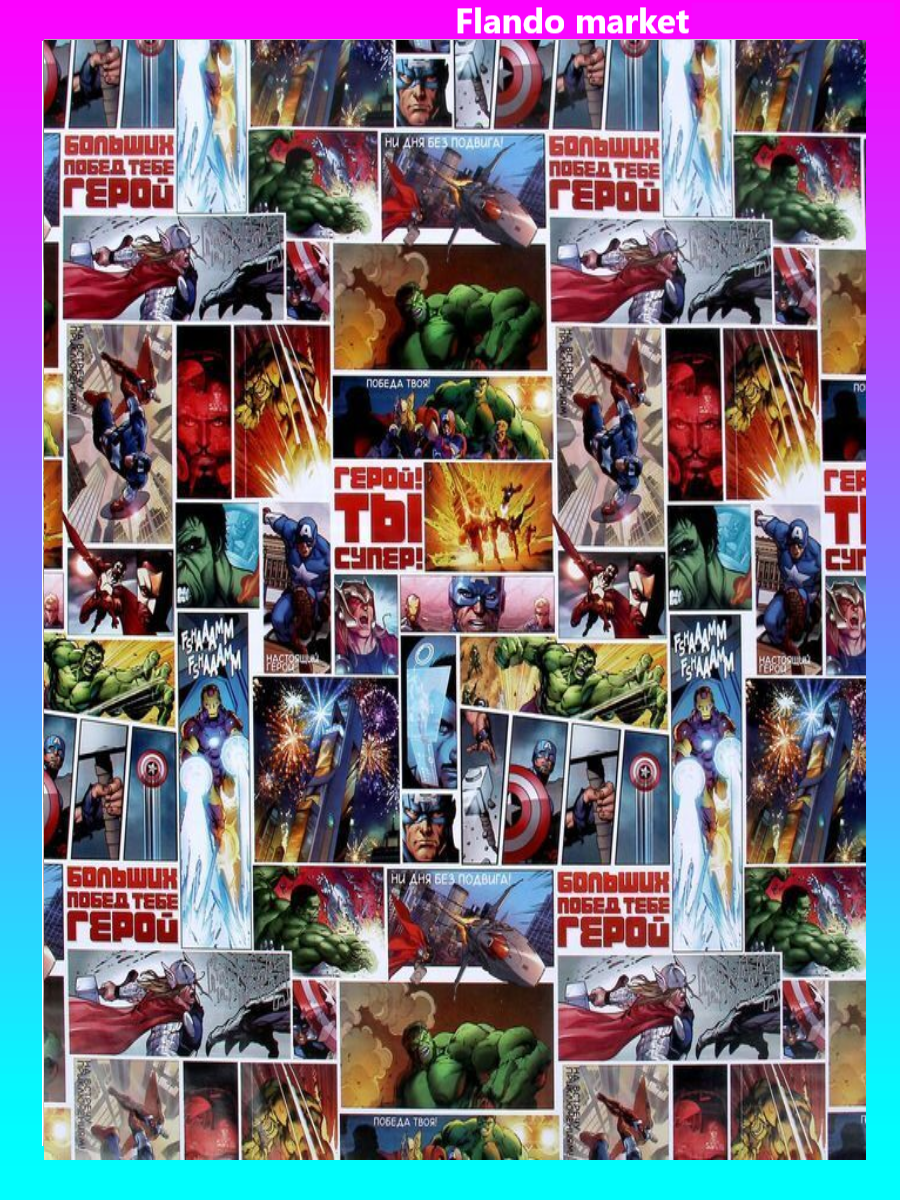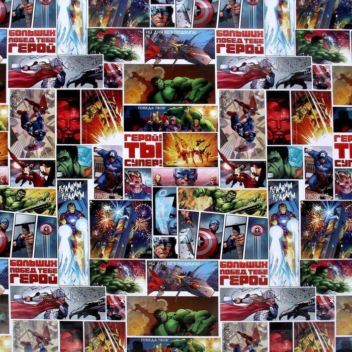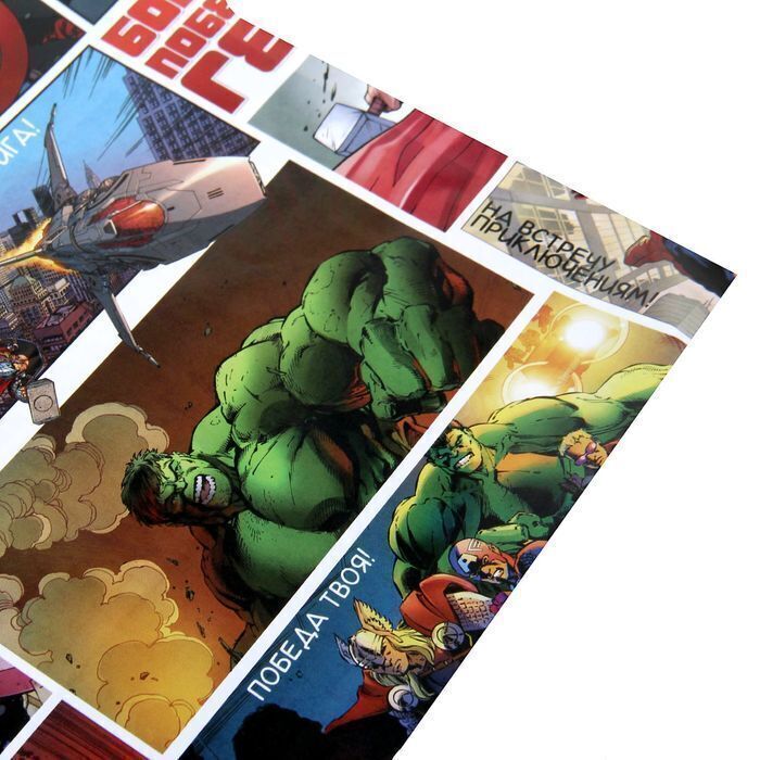 !09 Бумага упаковочная 2 листа глянцевая «Ты Супер Герой», Мстители, 70x100 см