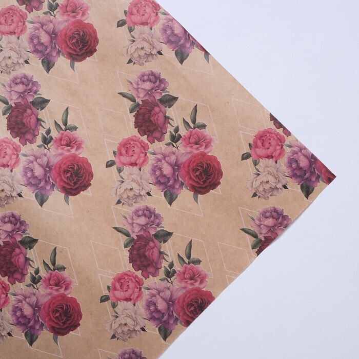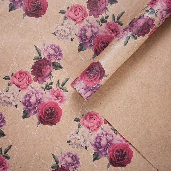 !09 Бумага (набор 5 листов) упаковочная крафтовая «Цветочные сны», 70 × 100 см.
