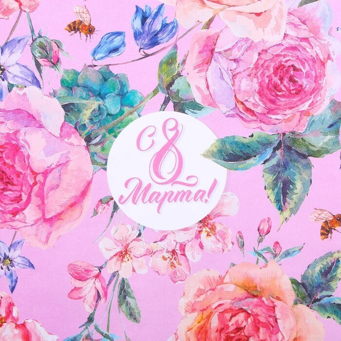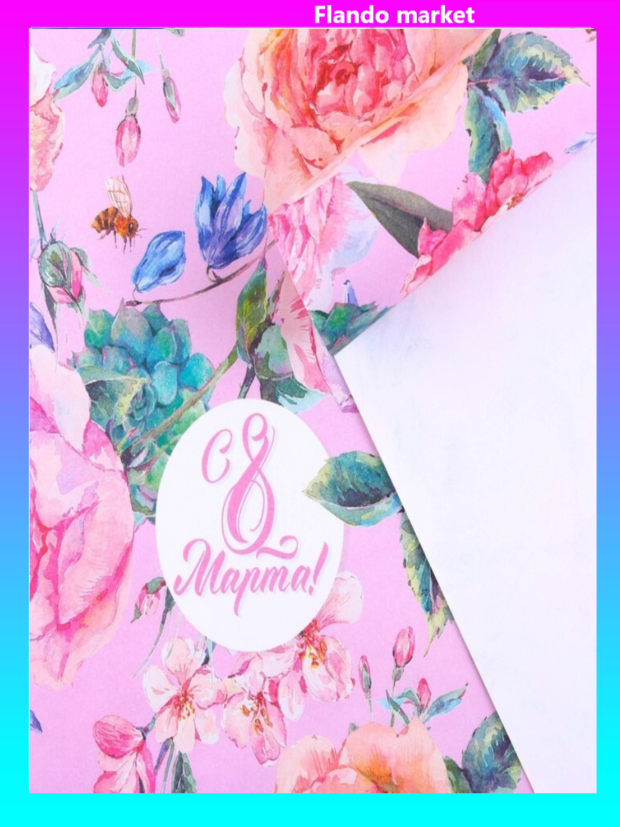 !09 Бумага упаковочная (набор 3 листа) крафтовая «Цветы на 8 марта», 70 × 100 см.