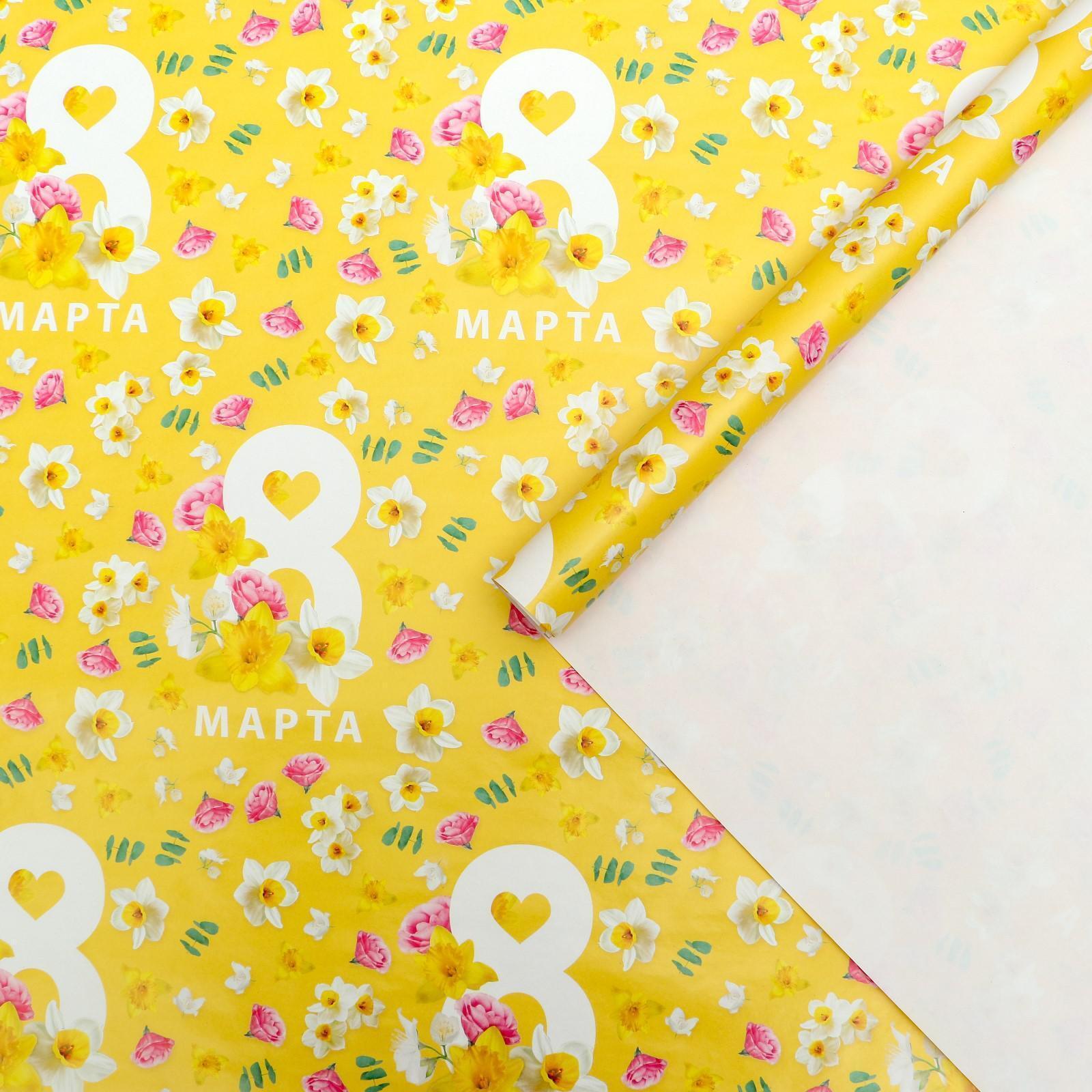 !09 Бумага упаковочная (набор 3 листа) глянцевая «Яркое 8 марта», 70 × 100 см.