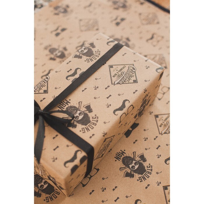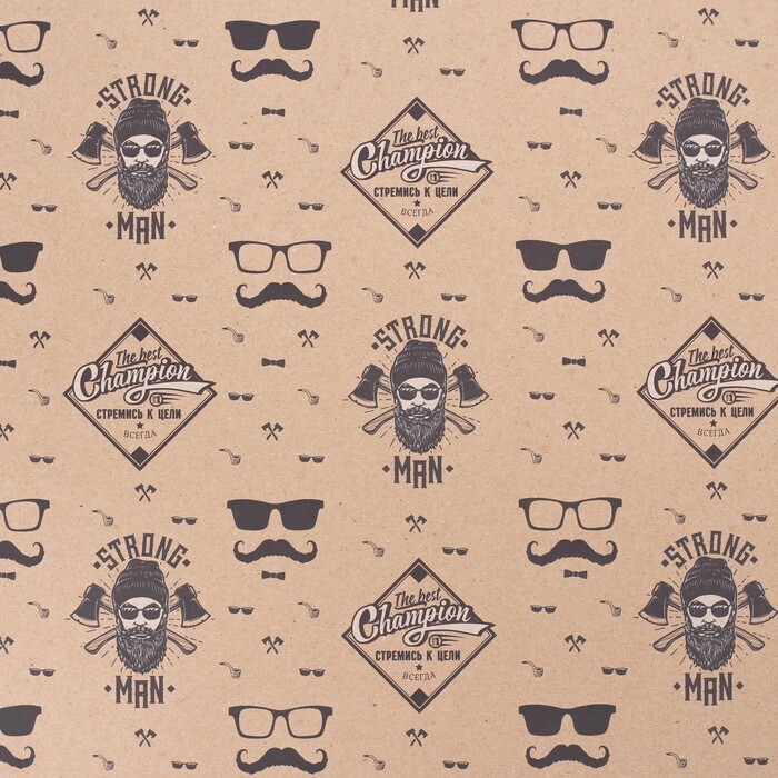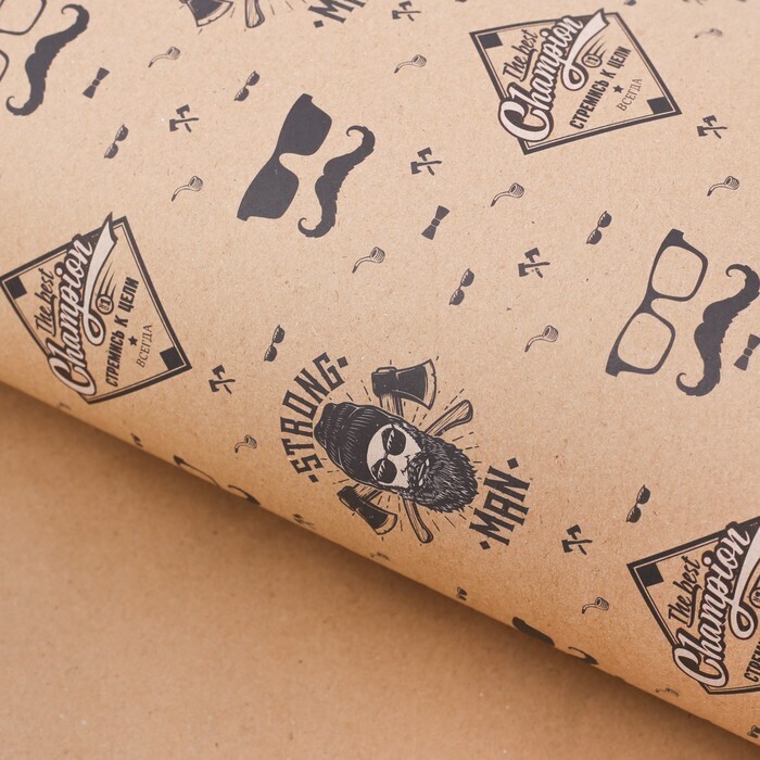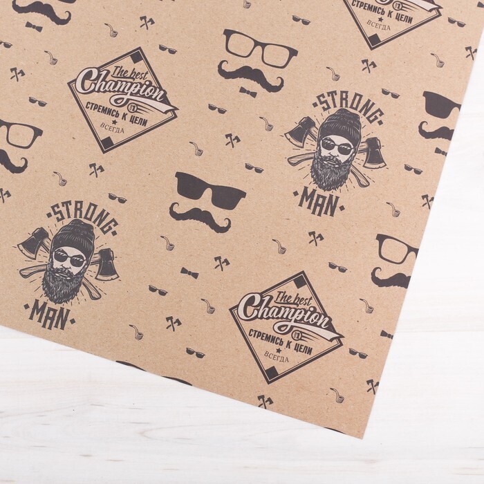 !09 Бумага (набор 3 листа) упаковочная крафтовая «Strong man» 50 × 70 см.