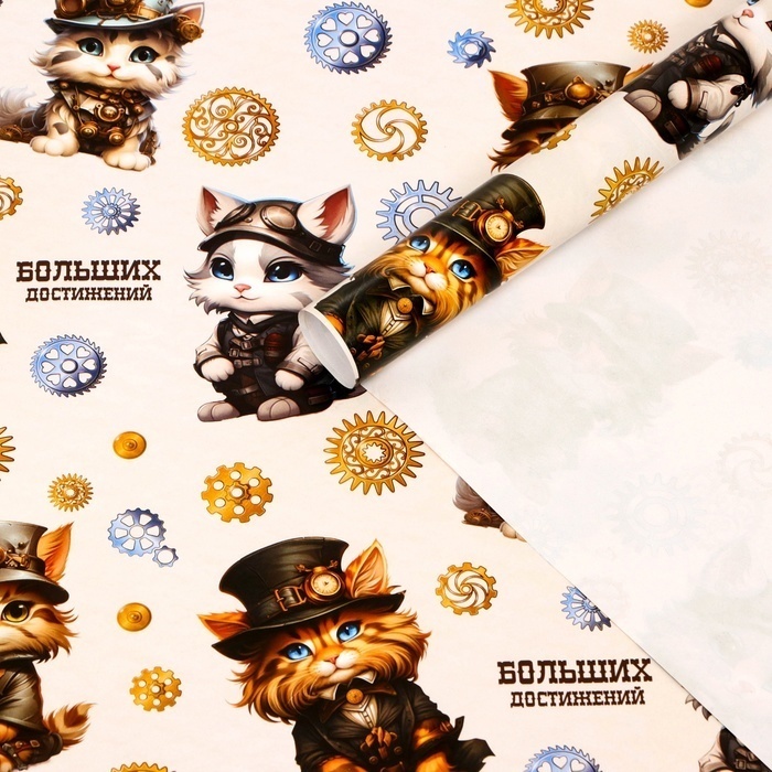 !09 Бумага (набор 5 листов) упаковочная глянцевая "Больших достижений", 100 х 70 см.