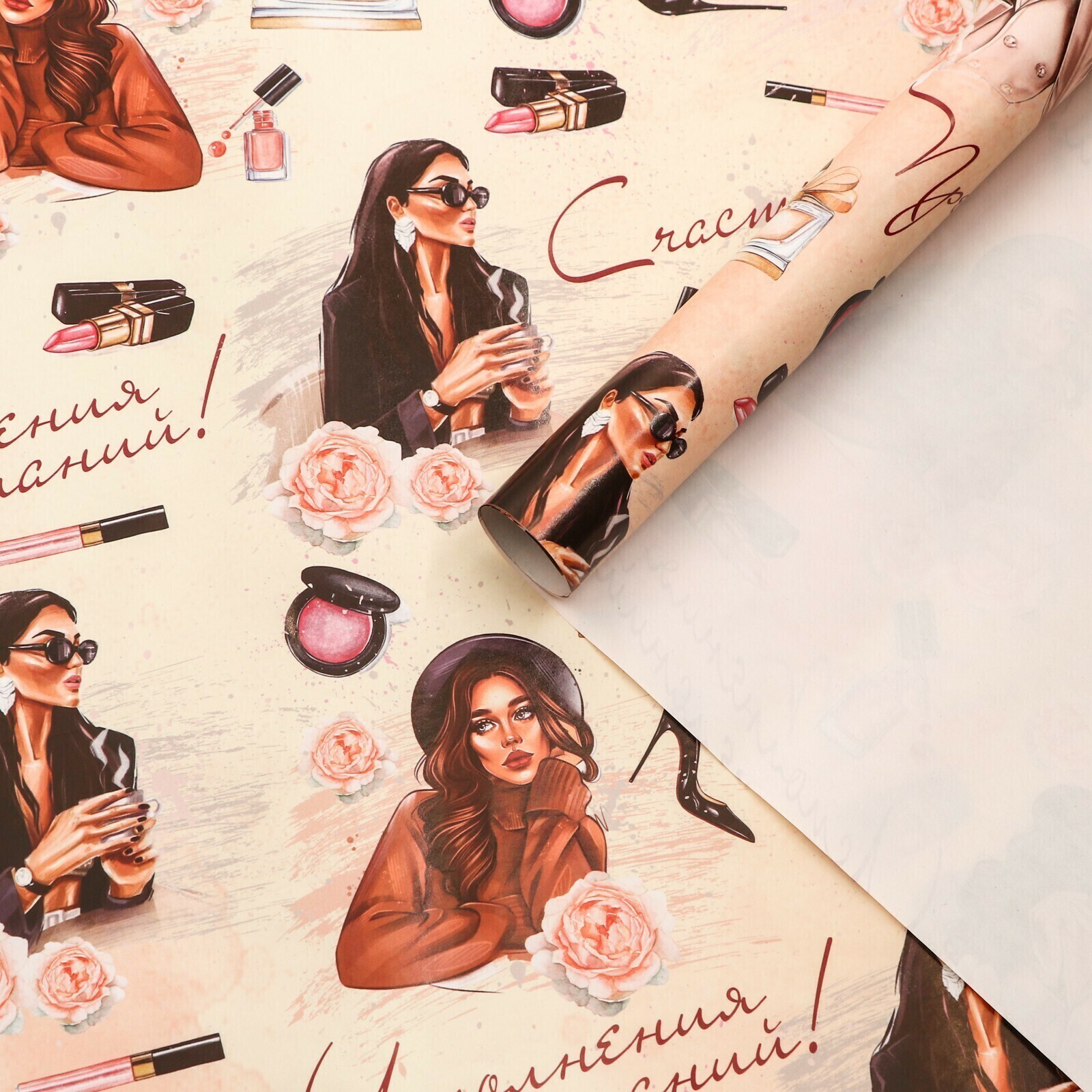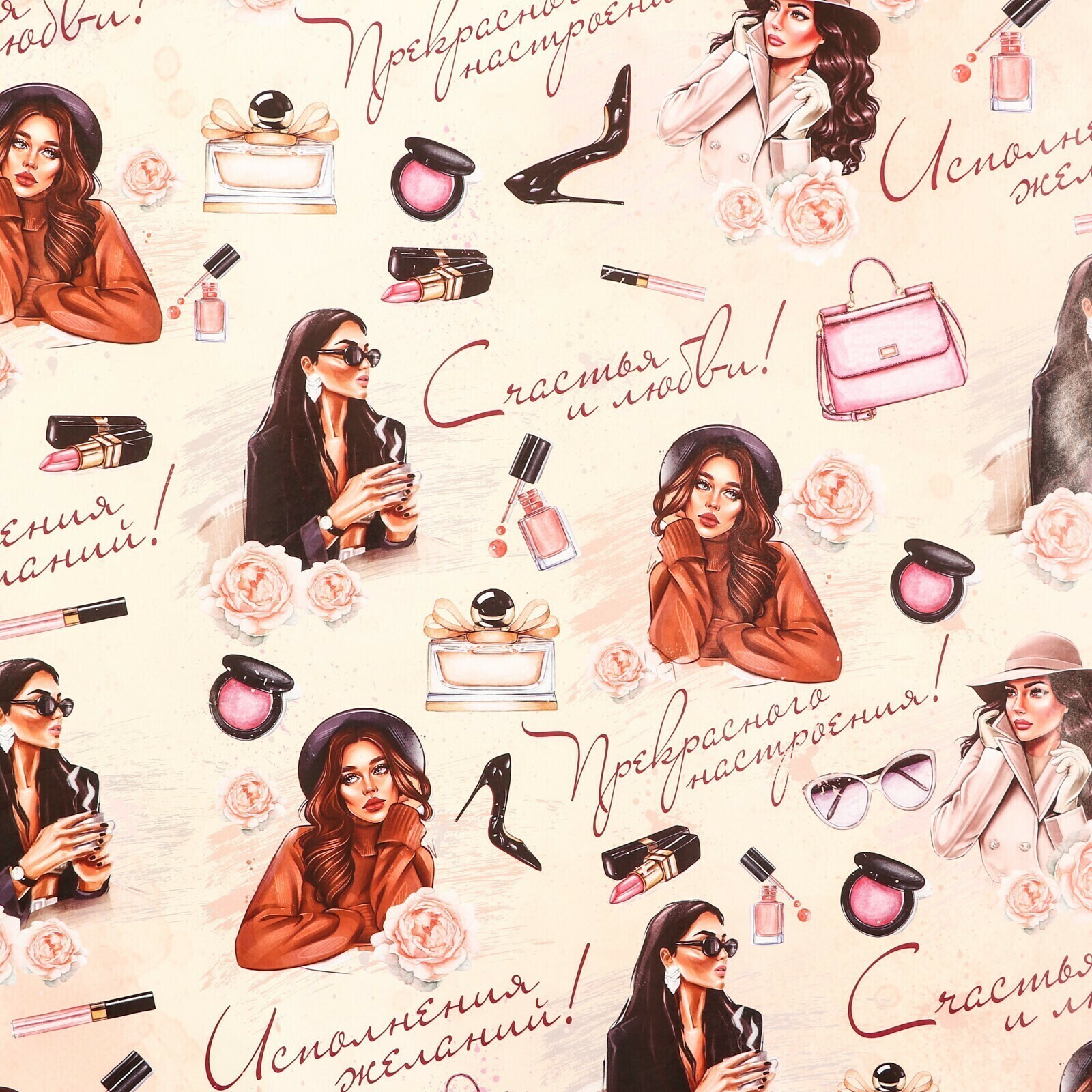 !09 Бумага упаковочная 4 листа глянцевая "Мода", 70 х 100 см.