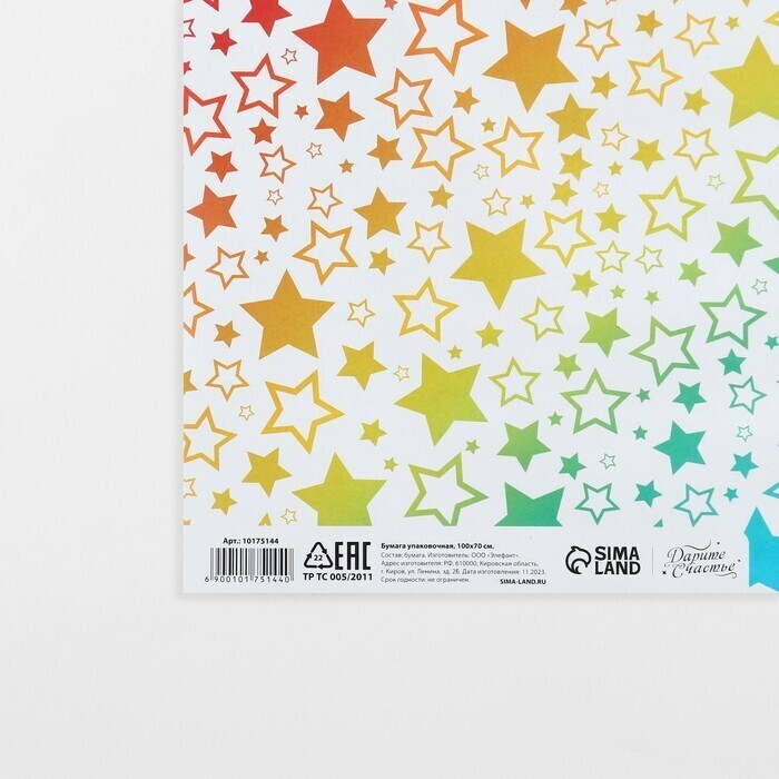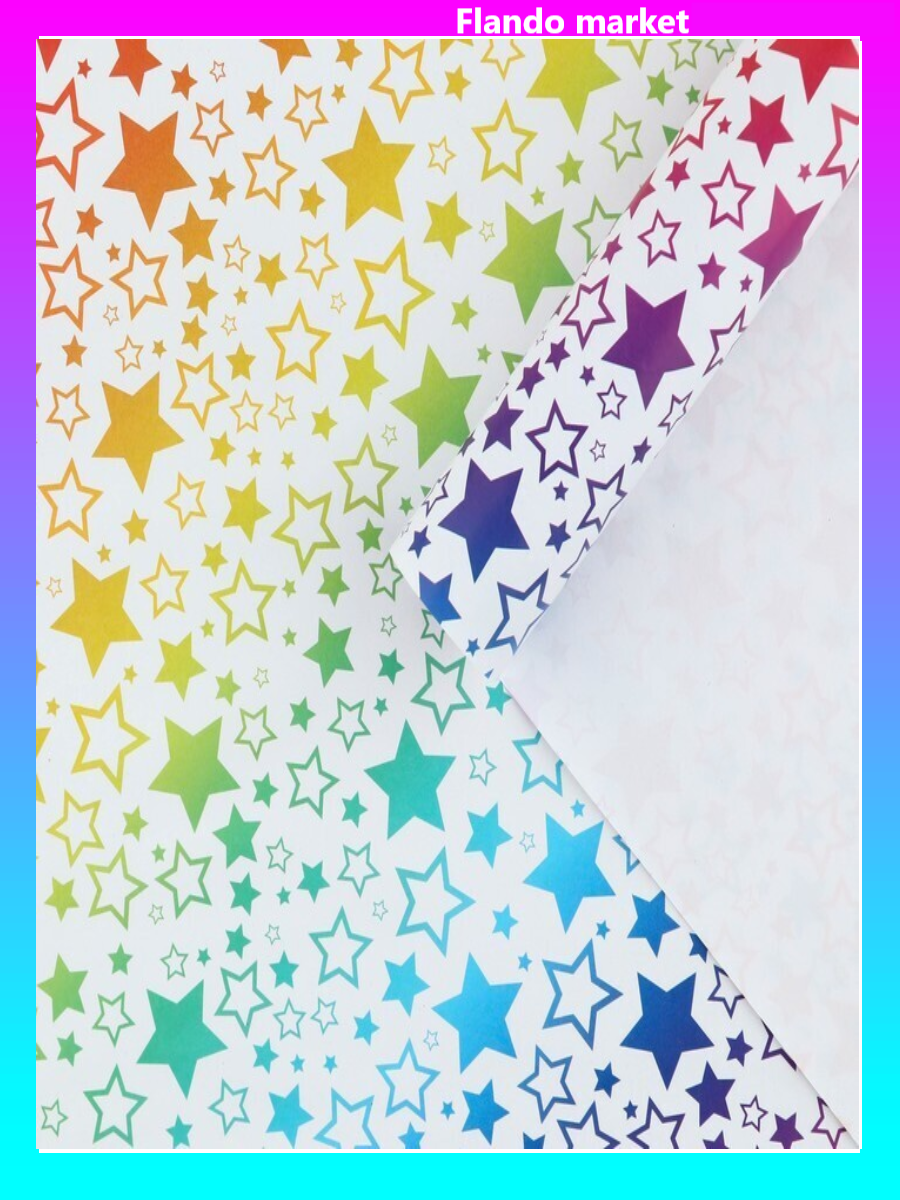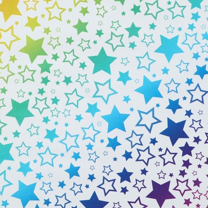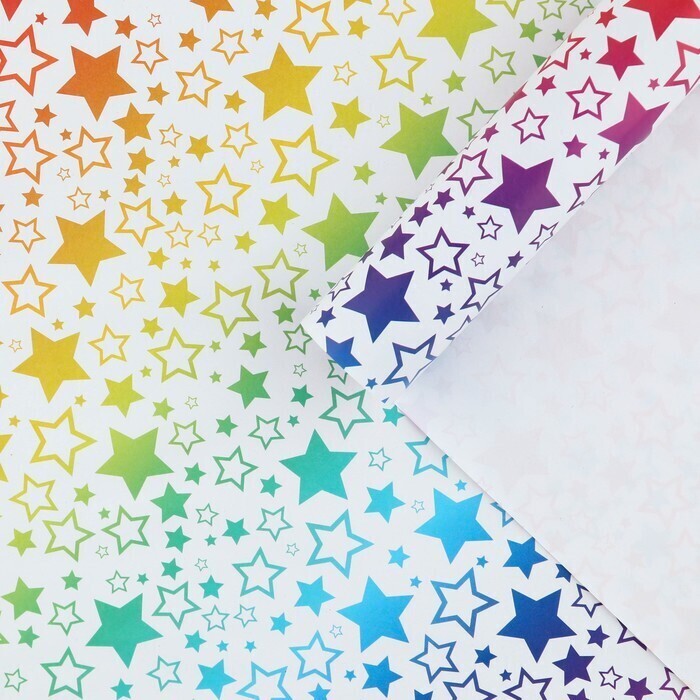 !09 Бумага упаковочная 4 листа глянцевая «Радужные звезды», 70 х 100 см