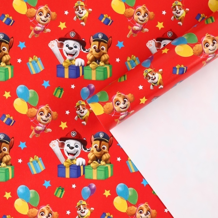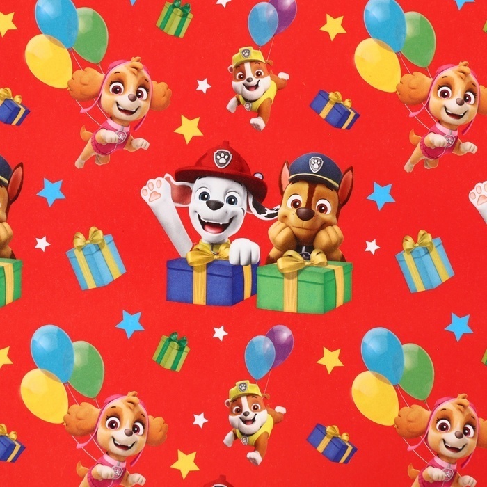 !09 Бумага упаковочная 4 листа глянцевая, Щенячий патруль, 70x100 см