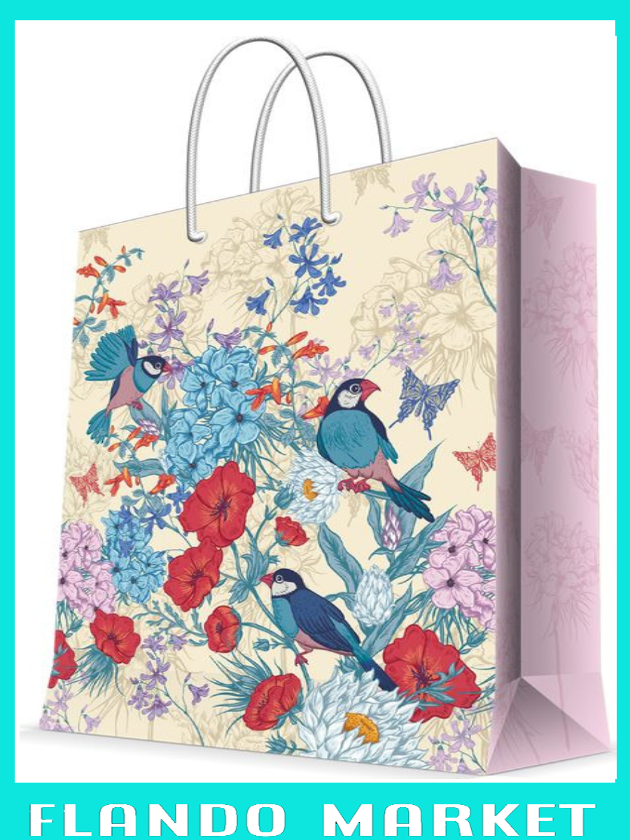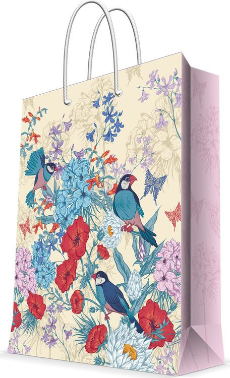 !09 Набор из 2-х пакетов размер 26x32 см.: Бумажный пакет "Рисовые амадины" + Бумажный пакет "Летние цветы"
