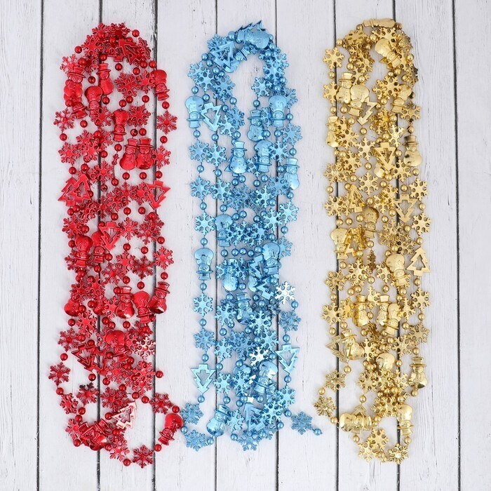!09 Набор из 2-х бус:Бусы на ёлку 2,7 м 2,3 см "Снежинки" цвет синий