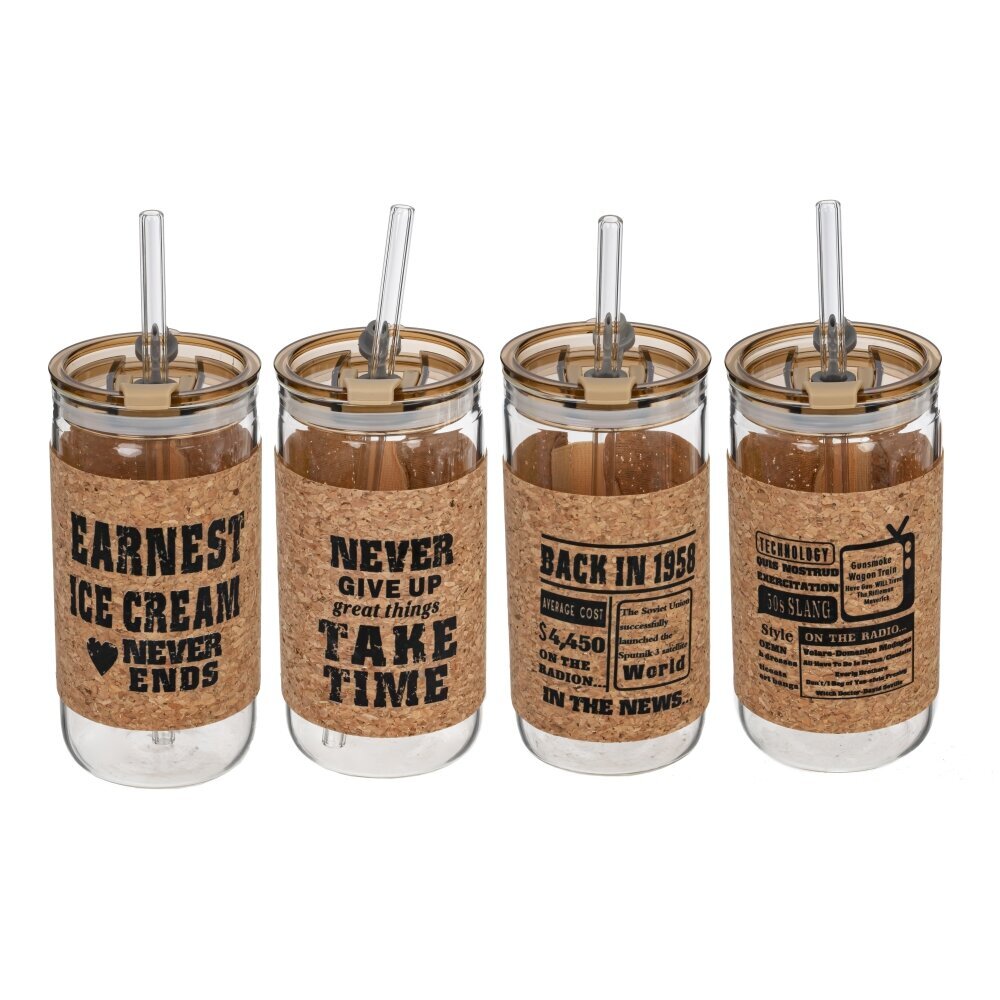 Бутылка с трубочкой, L7 W7 H14,3 см, 1 штука, дизайн микс