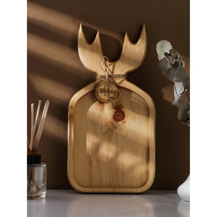 !09 Доска разделочная авторская Adelica «Рога», 35×18×2,5 см, цельный массив кедра, цвет молочный