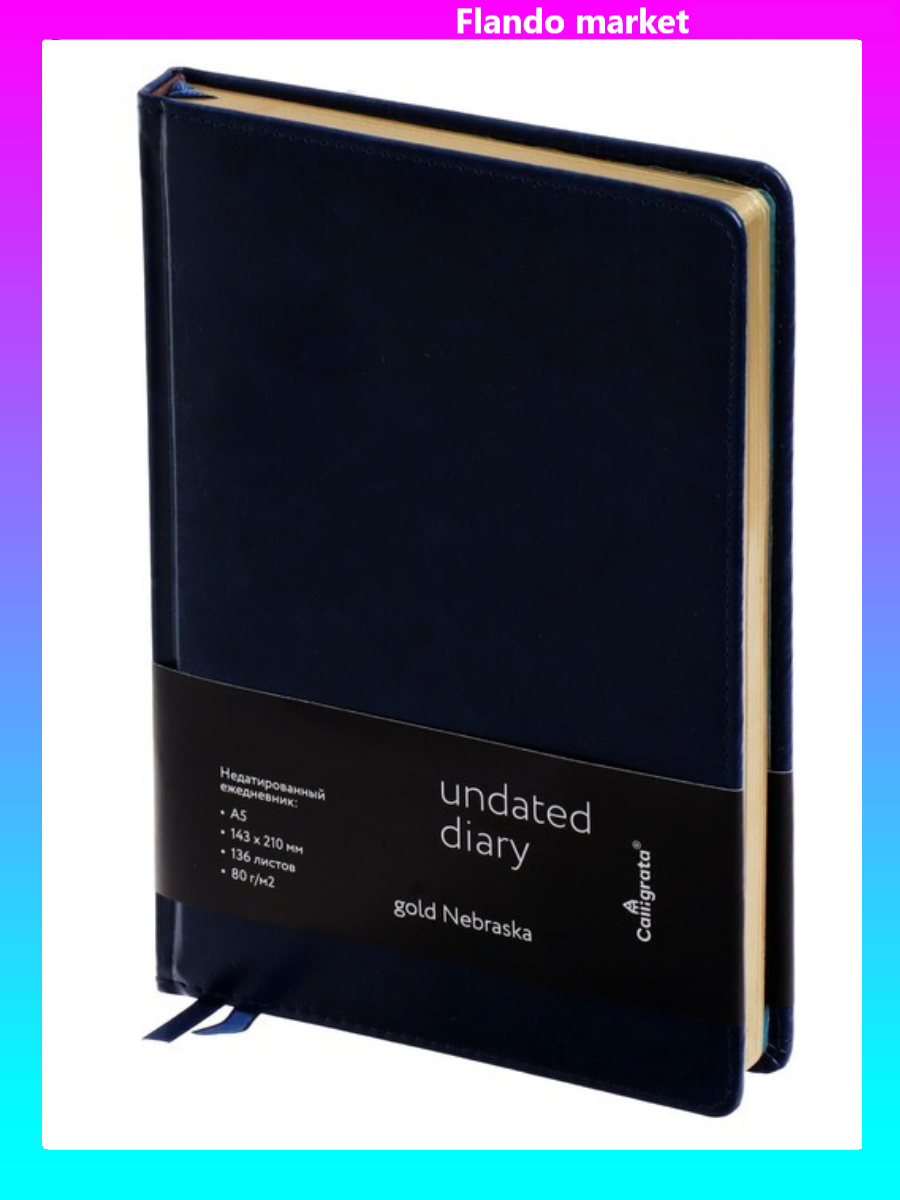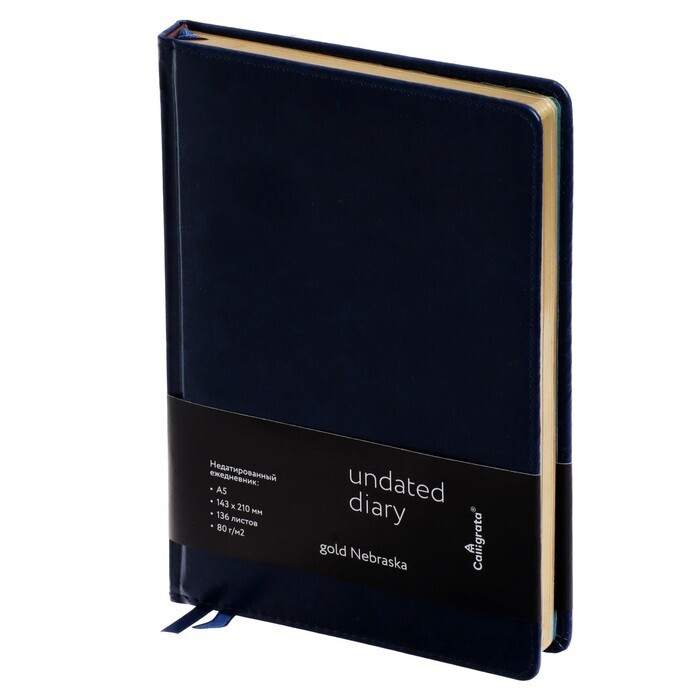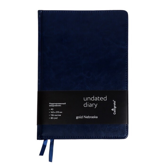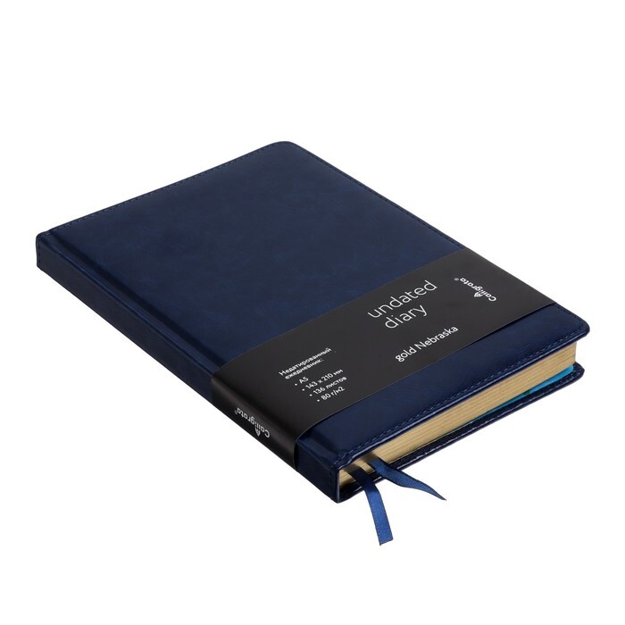 !09 Ежедневник НЕдатир. А5, 136 листов в линейку, кожзам "Небраска", золотой срез, синий