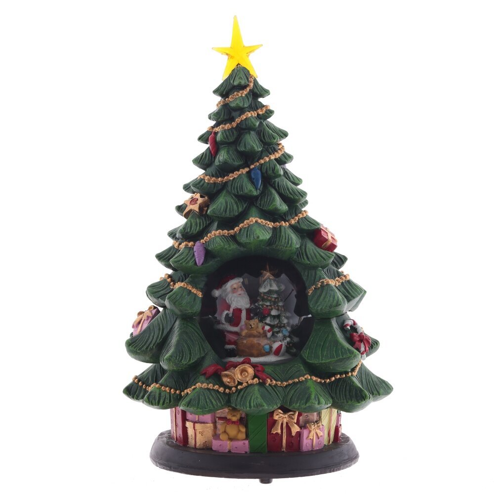 Фигур декор в стекл шаре "Елка и дед Мороз" (подсв, муз, вьюга, AAх3 н/п), D 10 см, L19,5 W19,5 H35