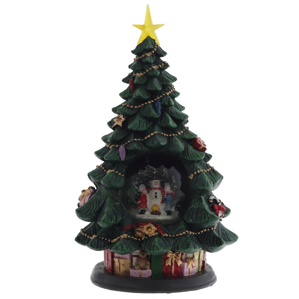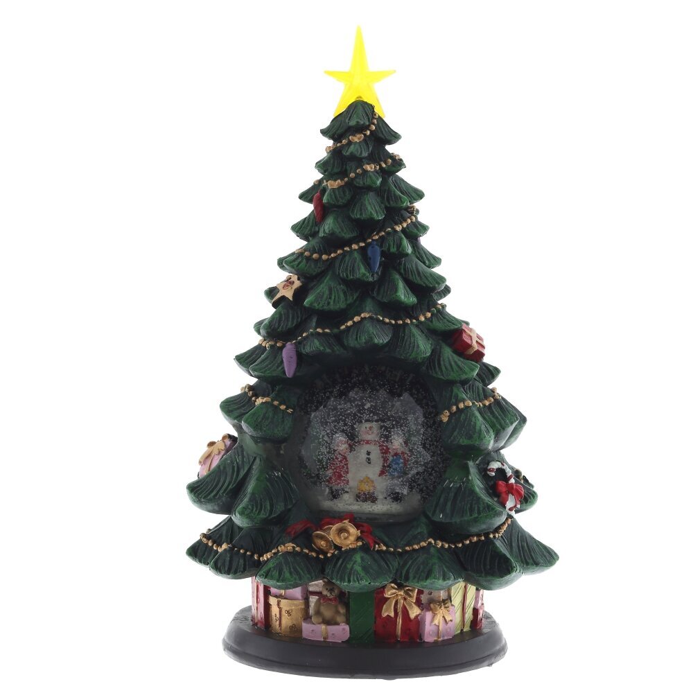 Фигур декор в стекл шаре "Елка и Снеговик" (подсв,муз, вьюга, AAх3 н/п), D 10 см, L19,5 W19,5 H35 см