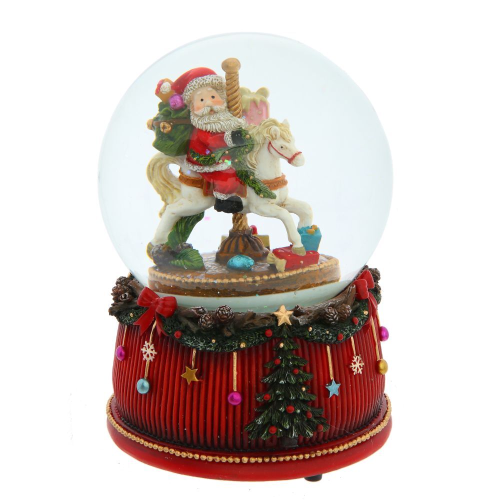 Фигурка декор в стекл шаре "Дед Мороз на лошадке" (муз с ключ, движ), D 10 см, L10 W10 H15 см