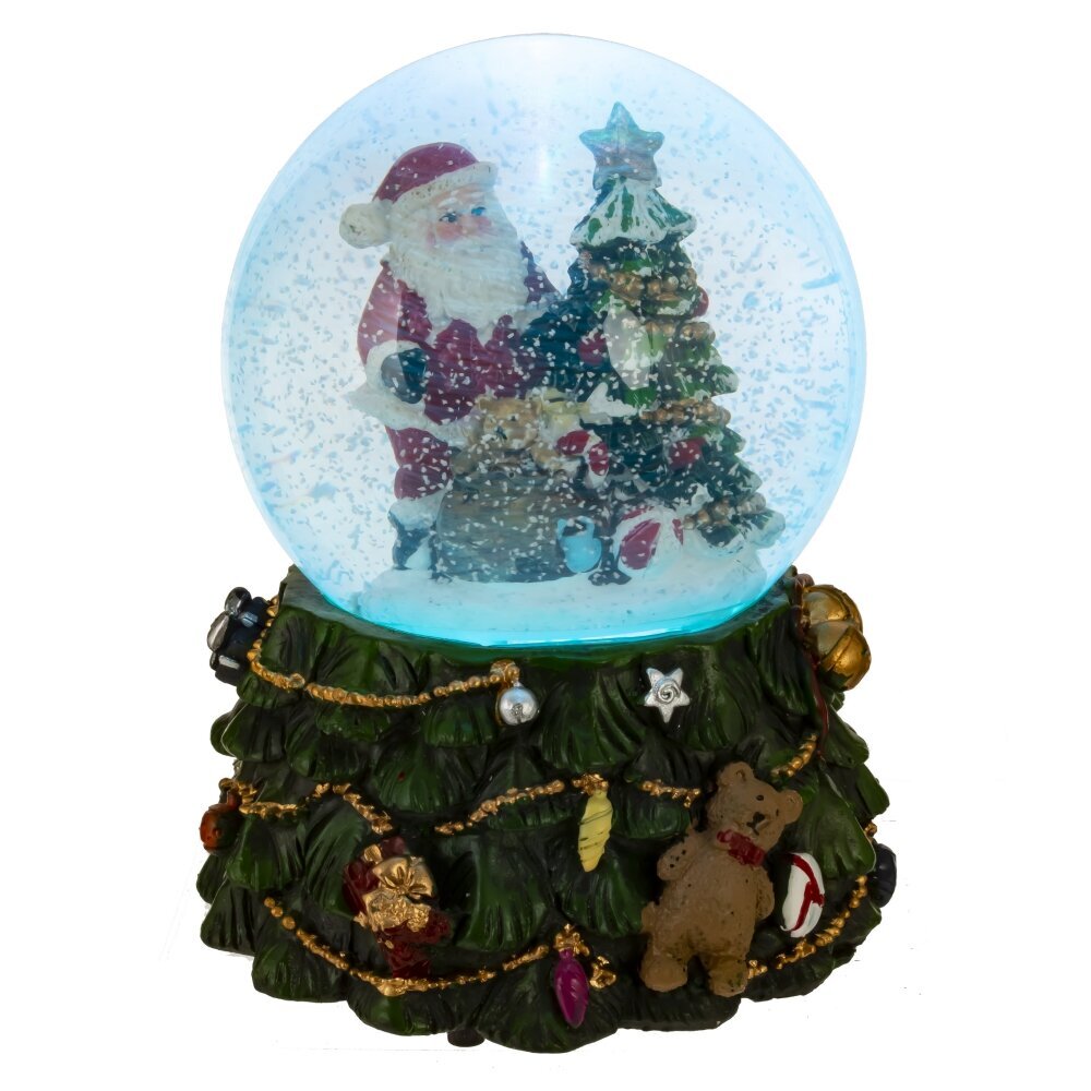 Фигурка декор в стекл шаре "Дед Мороз" ( подсв, муз, вьюга, AAAх3 н/п), D 10 см, L11 W11 H15 см