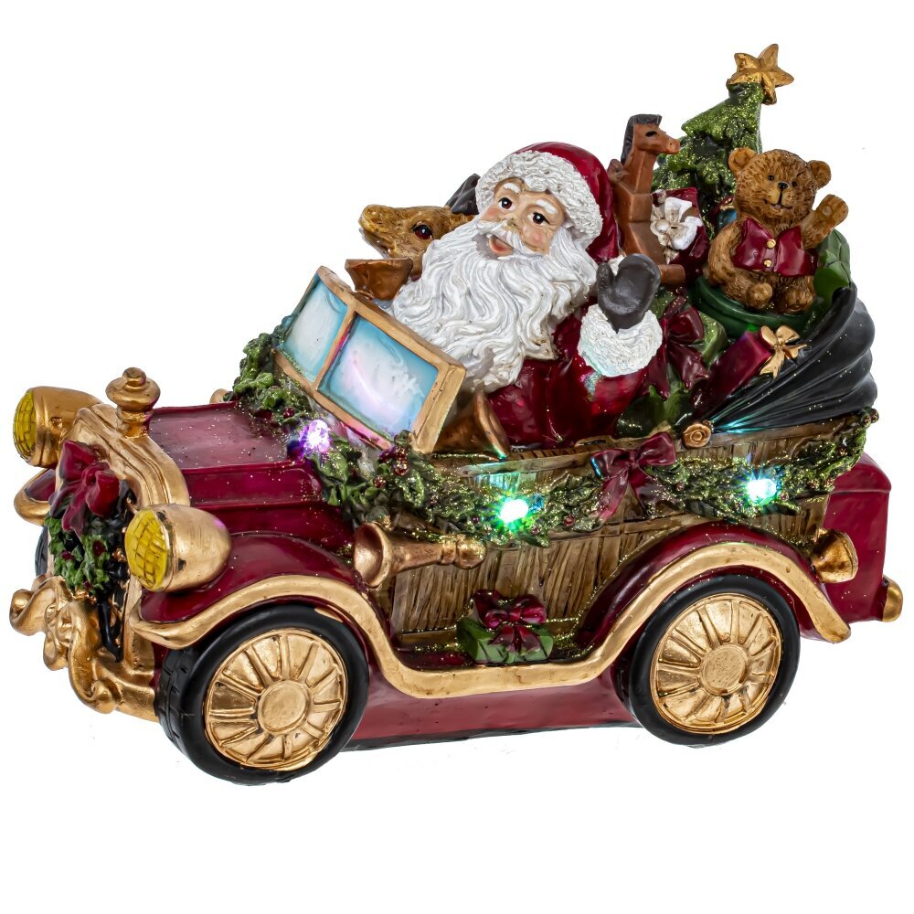Фигурка декоративная "Дед Мороз на машине" с подсвет (2xAA н/п), L25 W12 H16 см