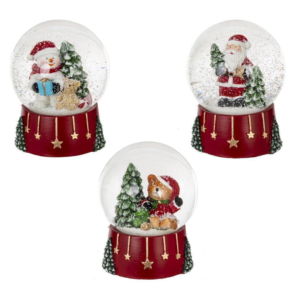 Фигурка декоративная "Дед Мороз/Снеговик/Медвежонок" в стекл шаре, L9 W8 H10 см, 3в.