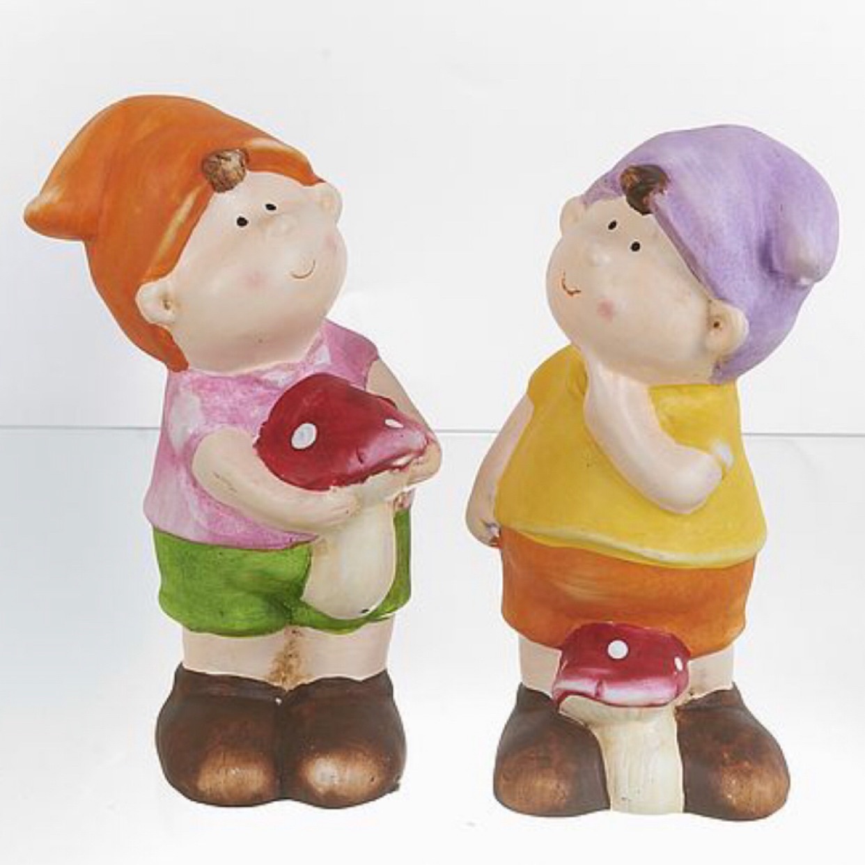 !09 Набор из 2-х фигур - Фигурка декоративная "Мальчик с грибком" h=24см. дизайн микс