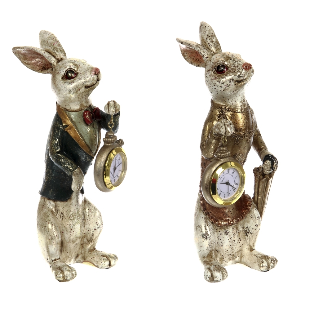 Фигурка декоративная "Заяц" с часами (LR41х1), L7 W11 H21 см, 2в.
