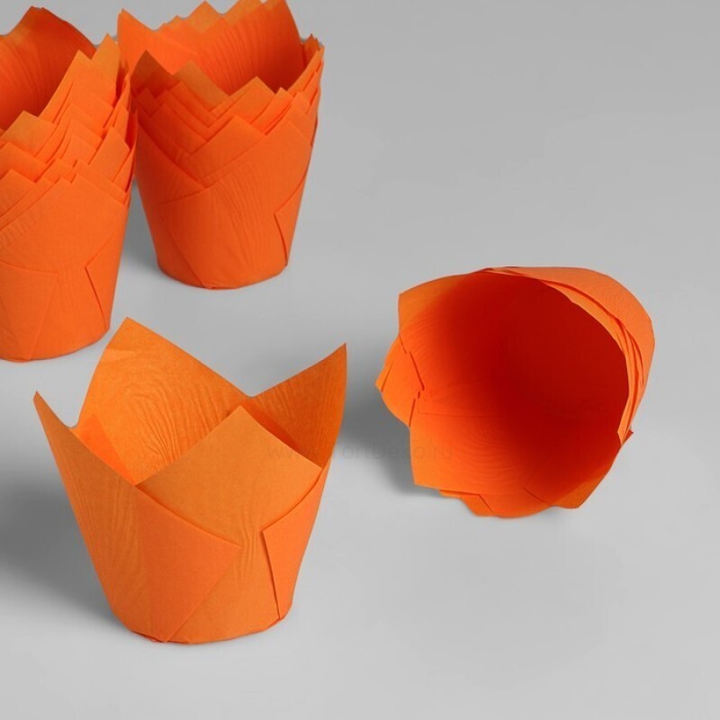 !09 Набор из 25 штук - Форма бумажная "Тюльпан", цвет оранжевый, 5 х 8 см.