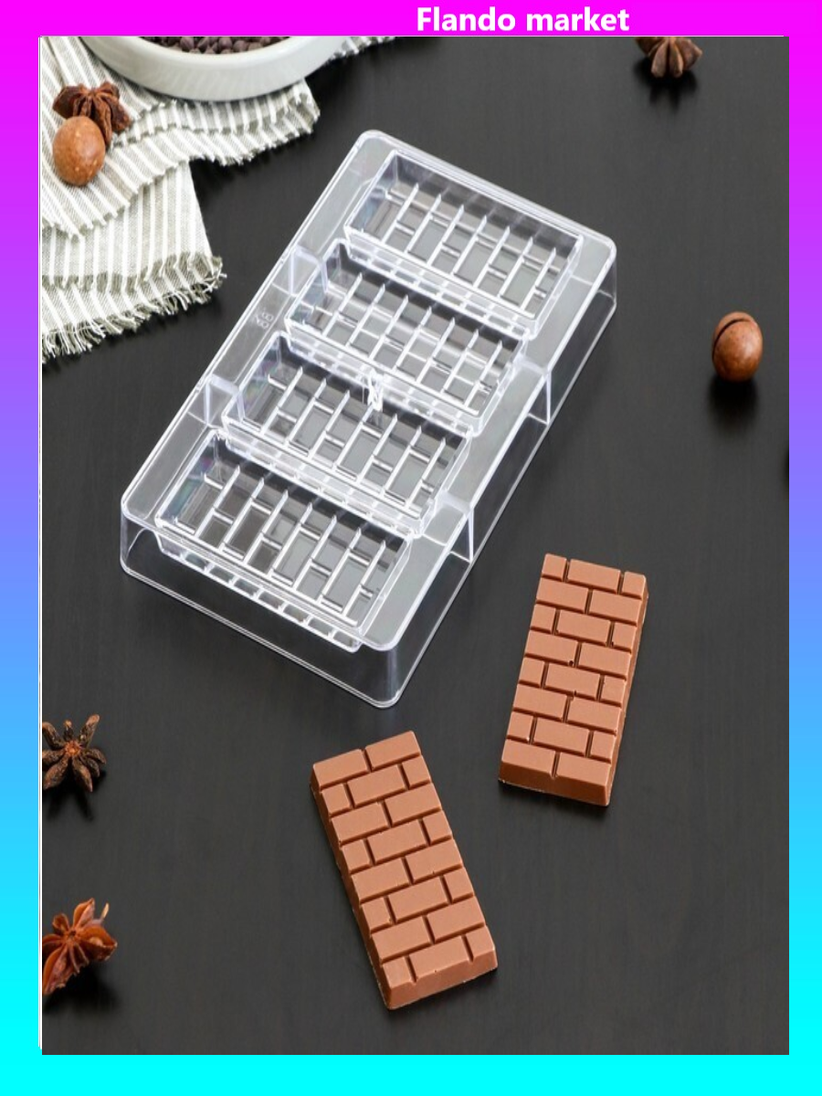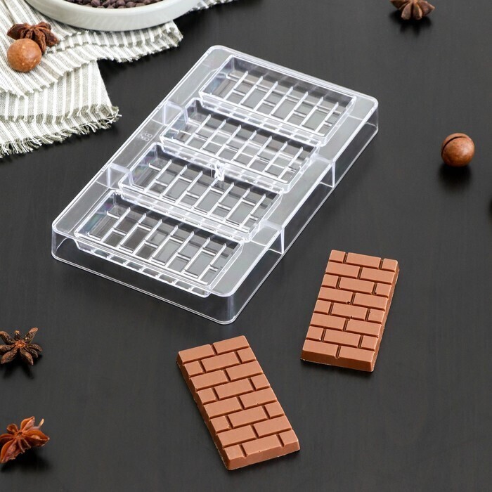 !09 Форма для шоколада и конфет «Брикс», 4 ячеек, 20×12×2,5 см, ячейка 8,5×4,2×1 см