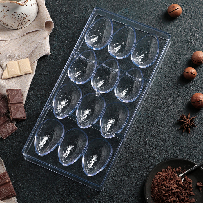 !09 Форма для шоколада и конфет «Шоколадное яйцо», 27,5×13,5 см, 12 ячеек, ячейка 3,6×5,7×1,5 см