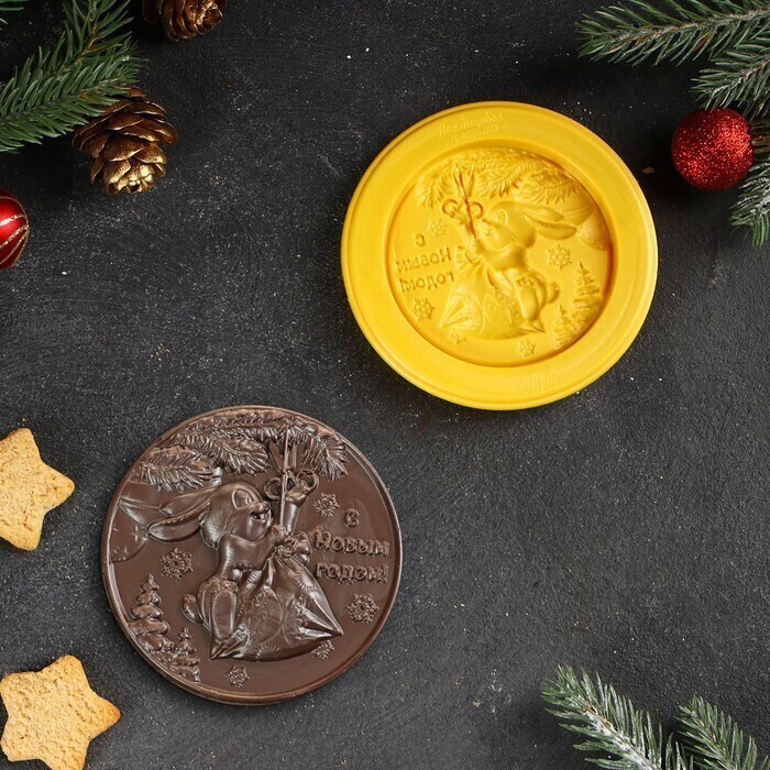 !09 Форма для шоколада и конфет «Новогодний зайчик», d=8 см