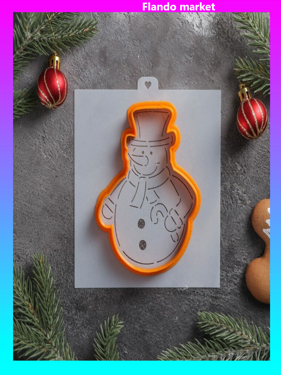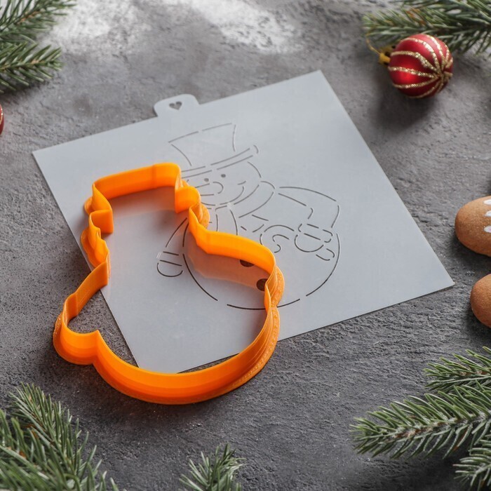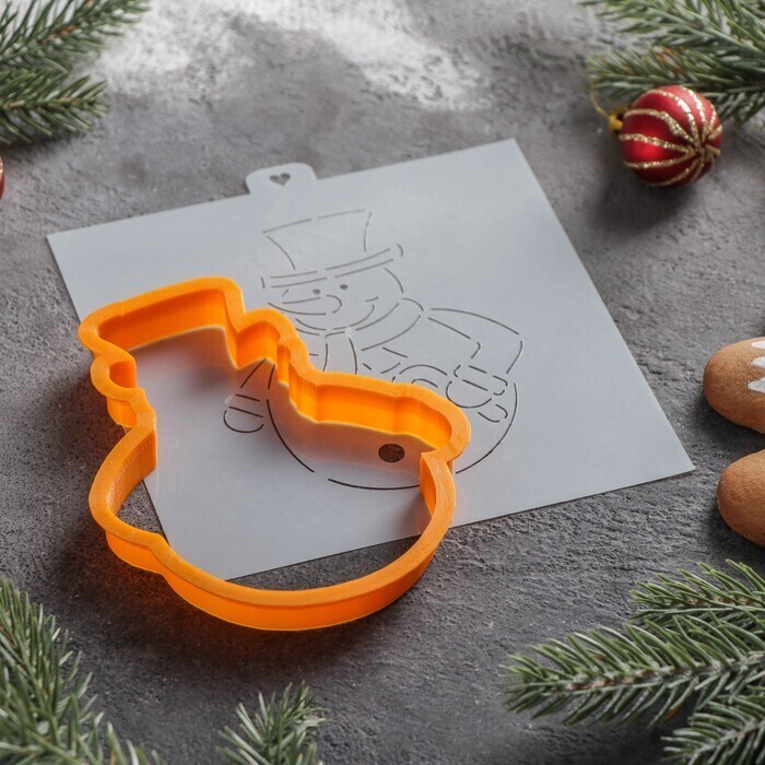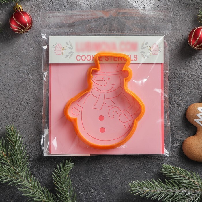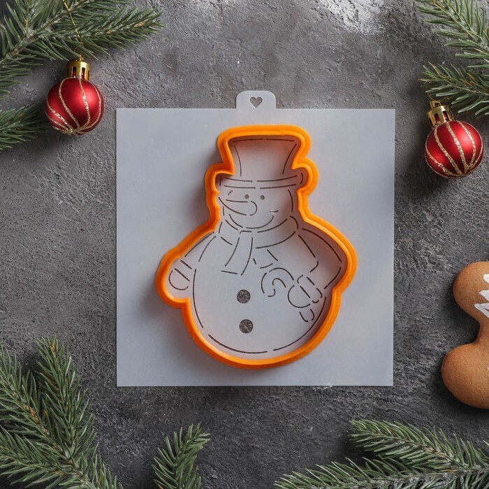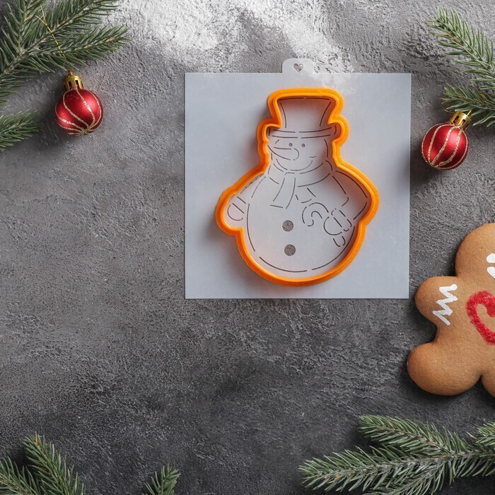 !09 Форма для вырезания печенья и трафарет «Снеговик в шляпе», цвет оранжевый