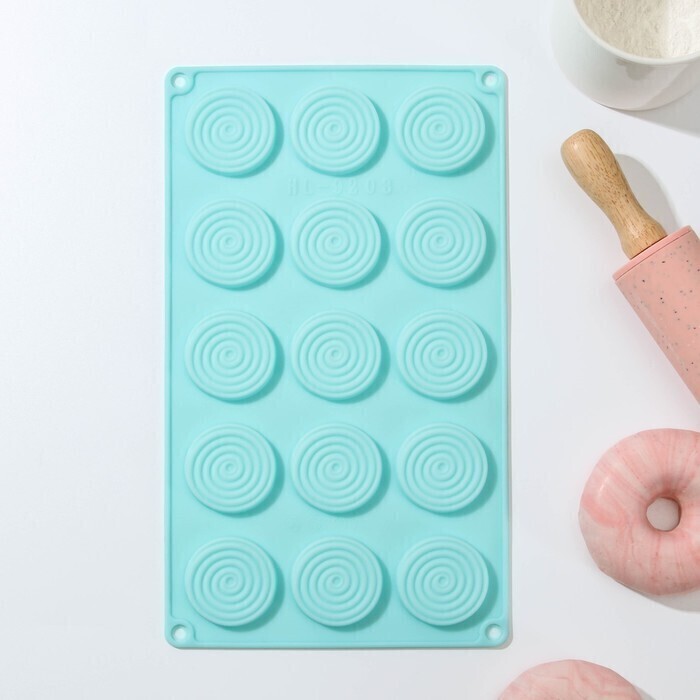 !09 Форма силиконовая для выпечки «Конфи», 15 ячеек, 29×17×1 см, цвет МИКС