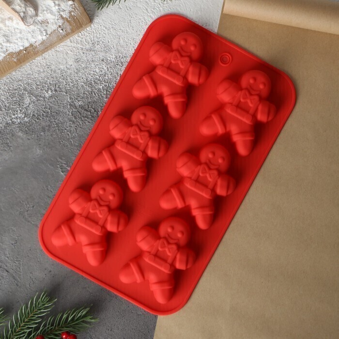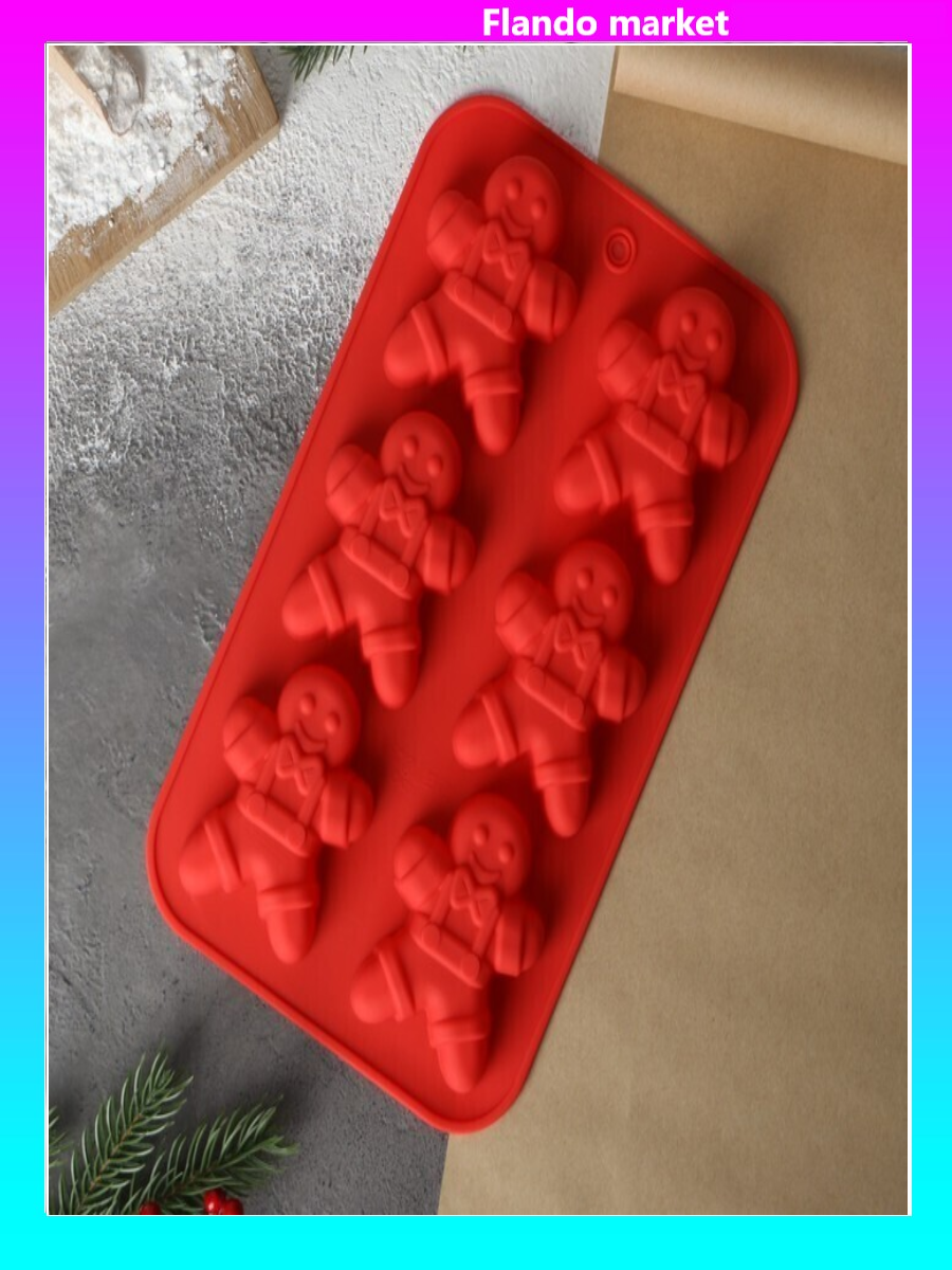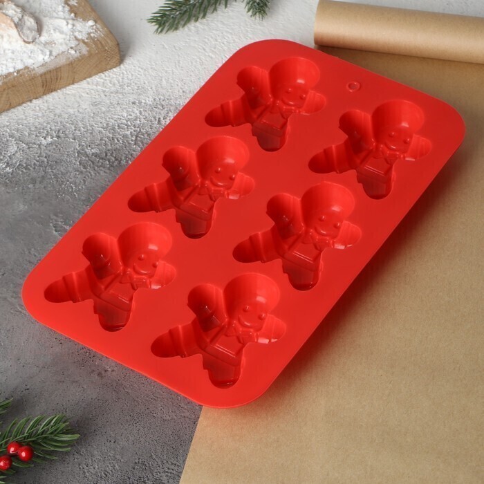 !09 Форма силиконовая для выпечки «Новый год. Имбирный пряник», 28×17 см, 6 ячеек, цвет МИКС