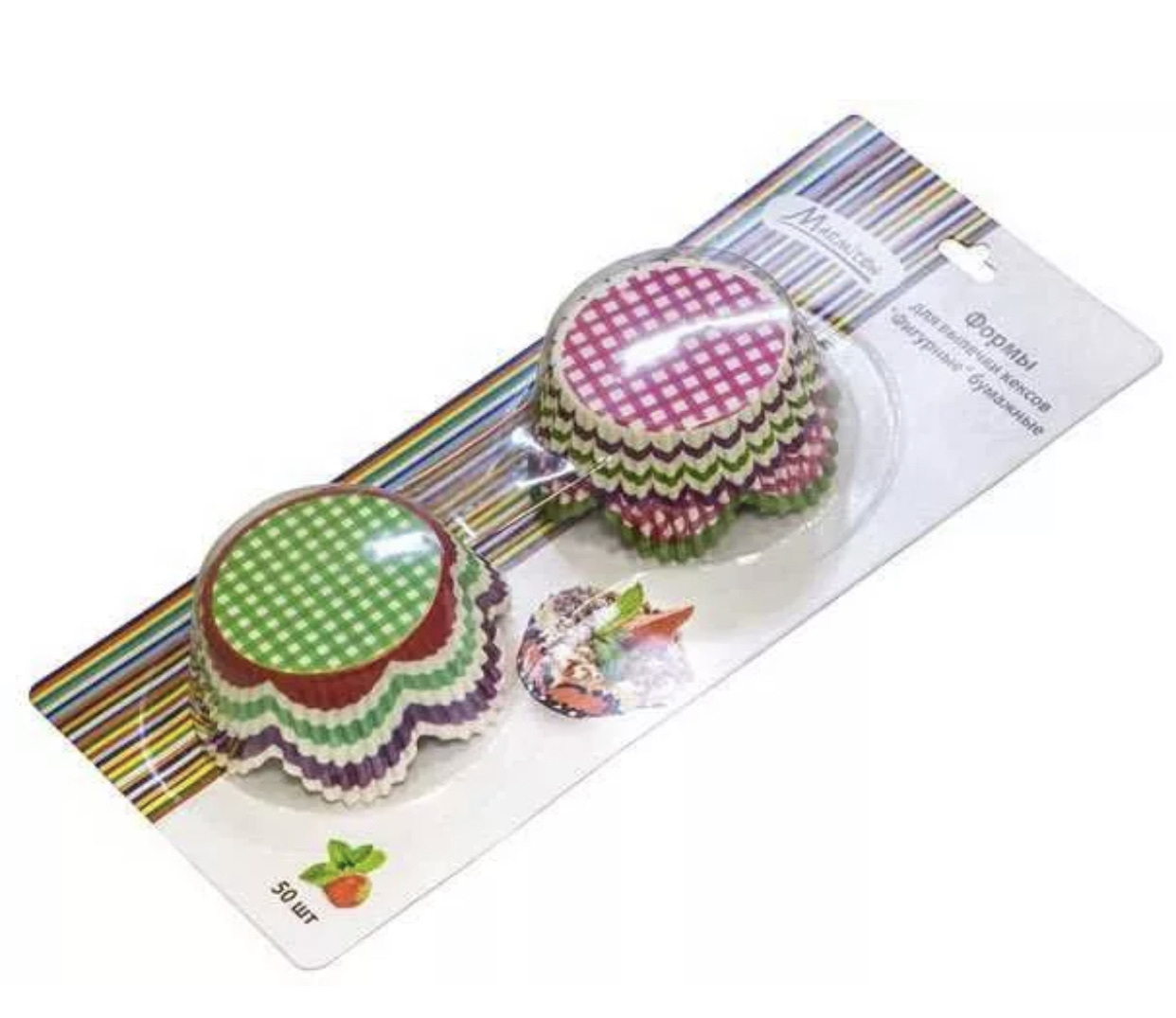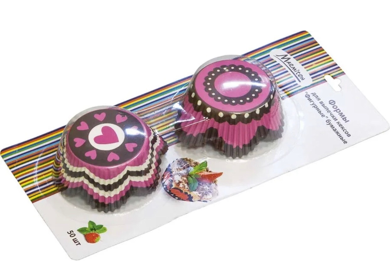 !09 Формы для выпечки кексов «Фигурные» бумажные (d 50мм, h 30 мм) 100 штук