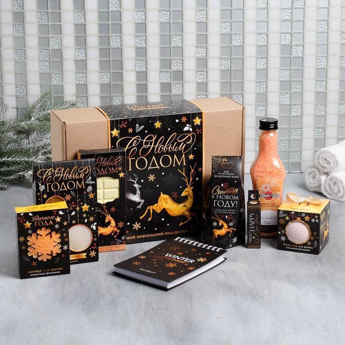 !09 Гифт бокс "С новым годом!"(Бомбочка для ванн, Жемчужины для ванн, Мыло, Скетчбук, Соль для ванны)