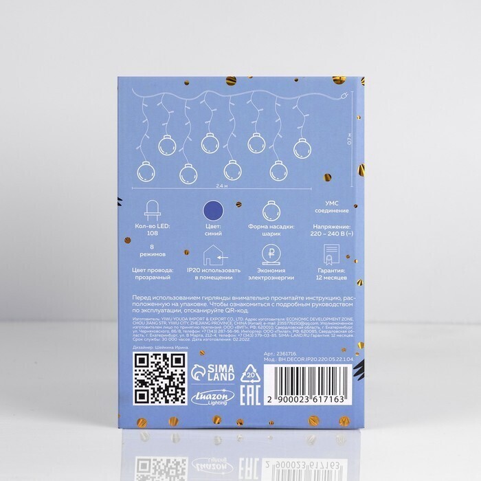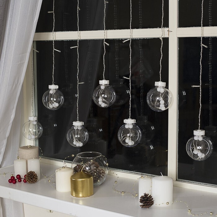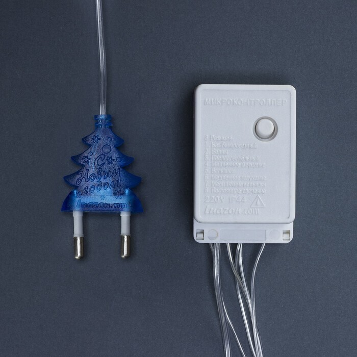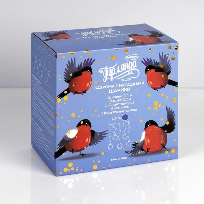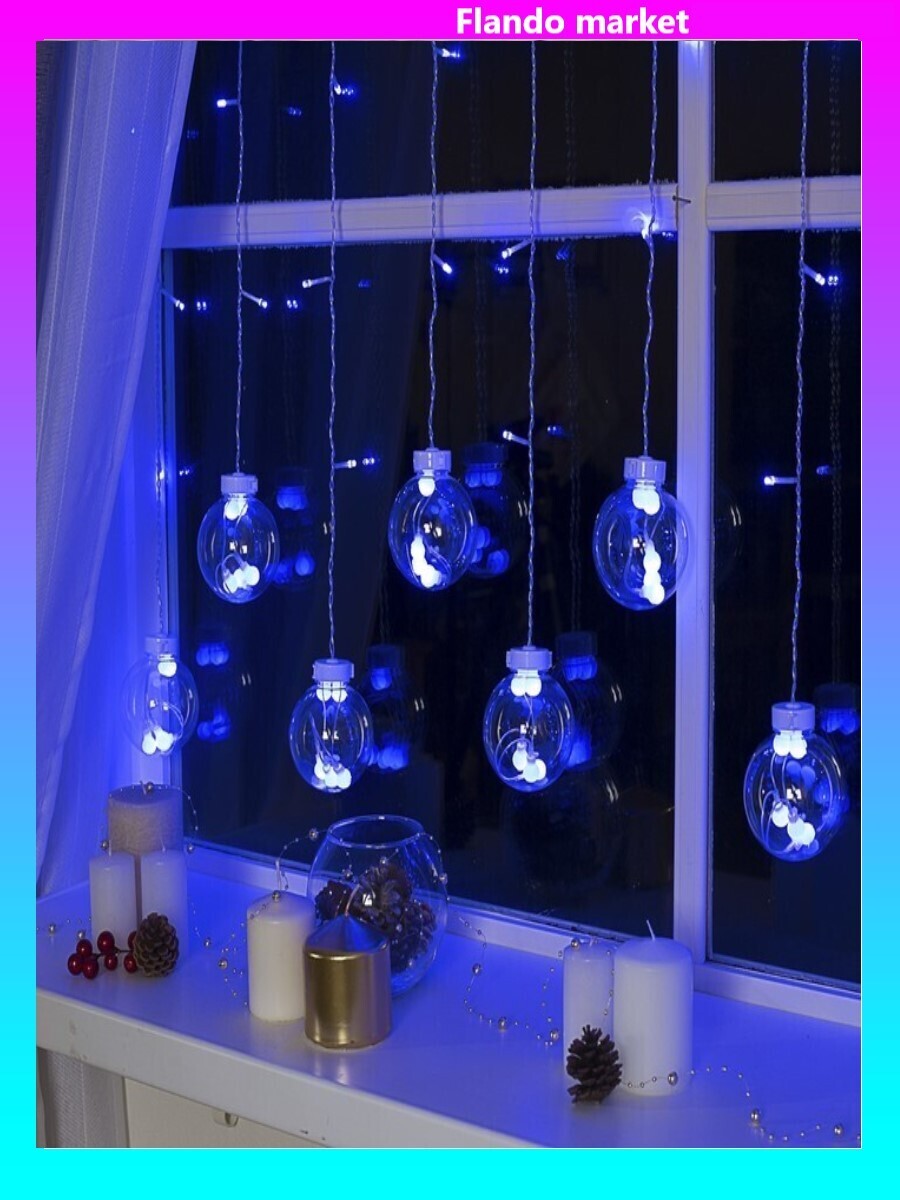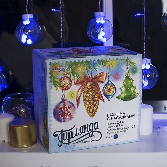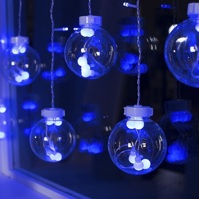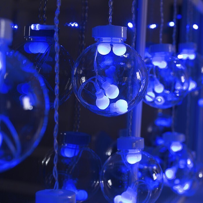 !09 Гирлянда «Бахрома» 2.4 x 0.7 м с насадками «Шарики», IP20, прозрачная нить, 108 LED, свечение синее, 8 режимов, 220 В