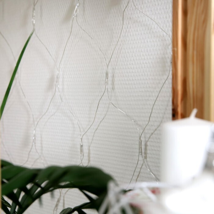 !09 Гирлянда «Сеть» 1.6 × 1.6 м, IP20, прозрачная нить, 144 LED, свечение жёлтое, 8 режимов, 220 В