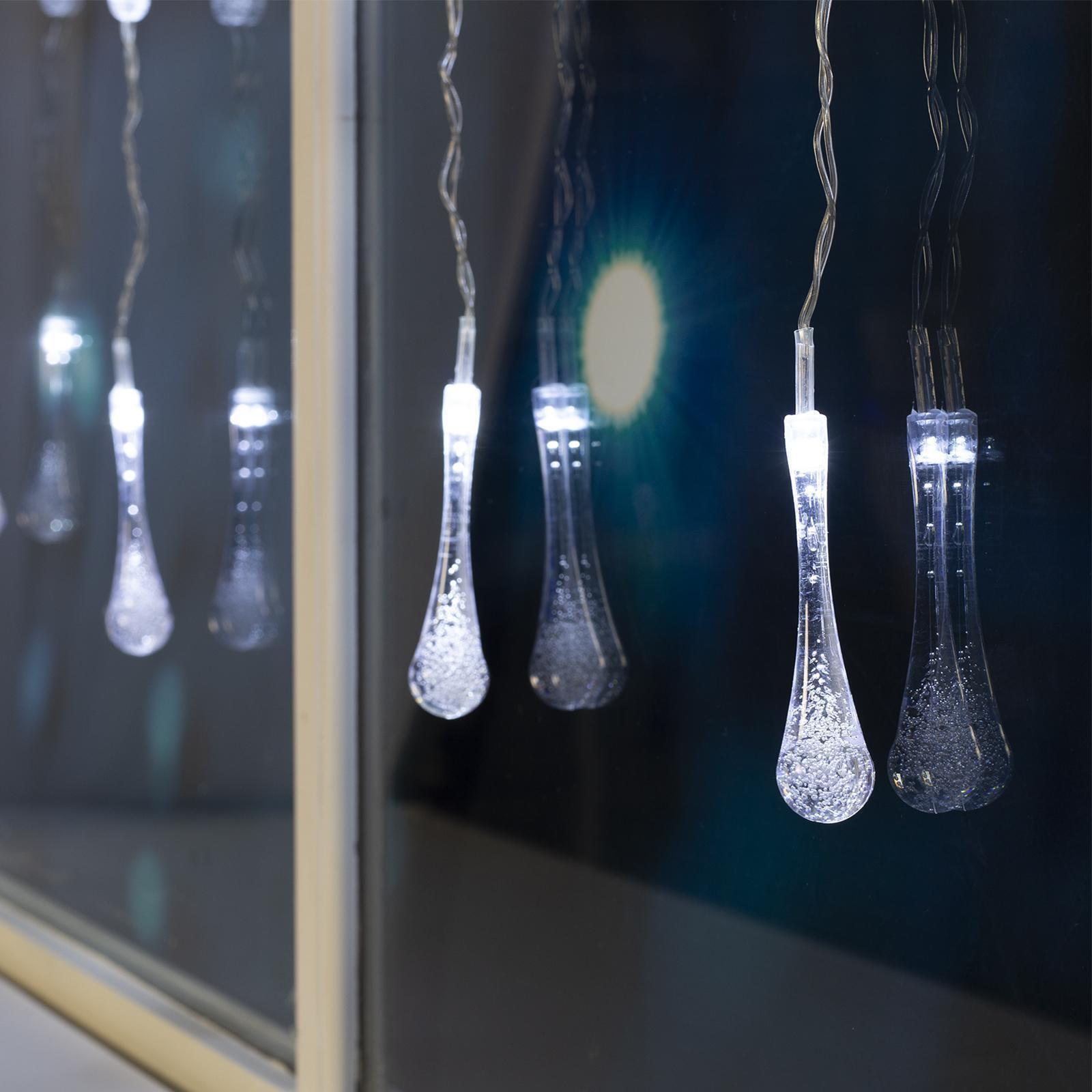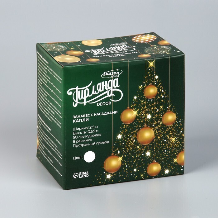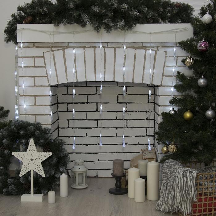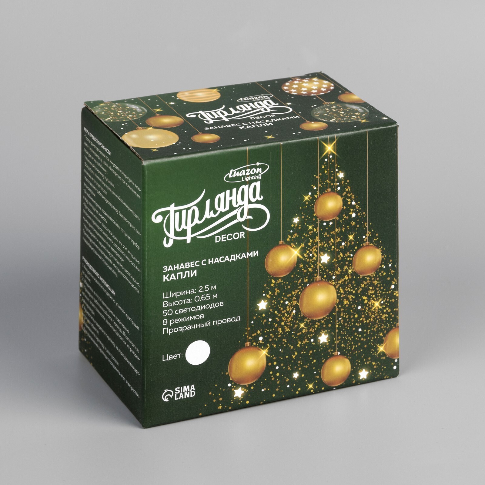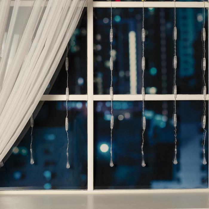 !09 Гирлянда «Занавес» 2.5 x 0.65 м с насадками «Капли», IP20, прозрачная нить, 50 LED, свечение белое, 8 режимов, 220 В