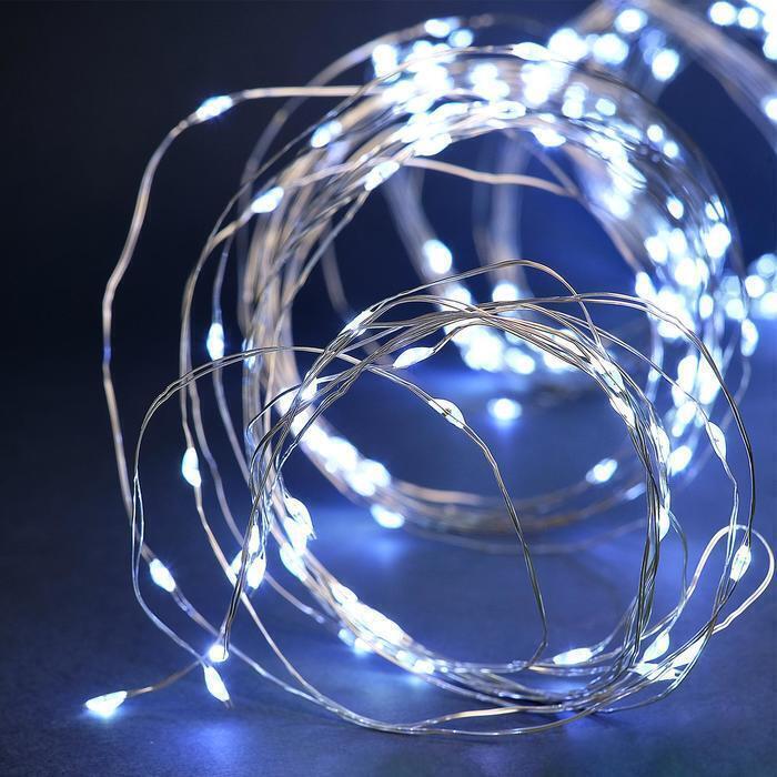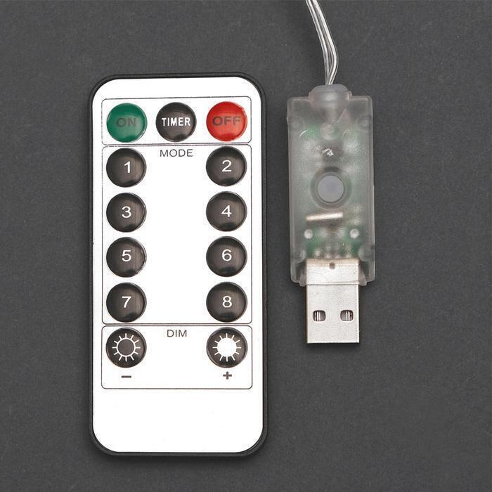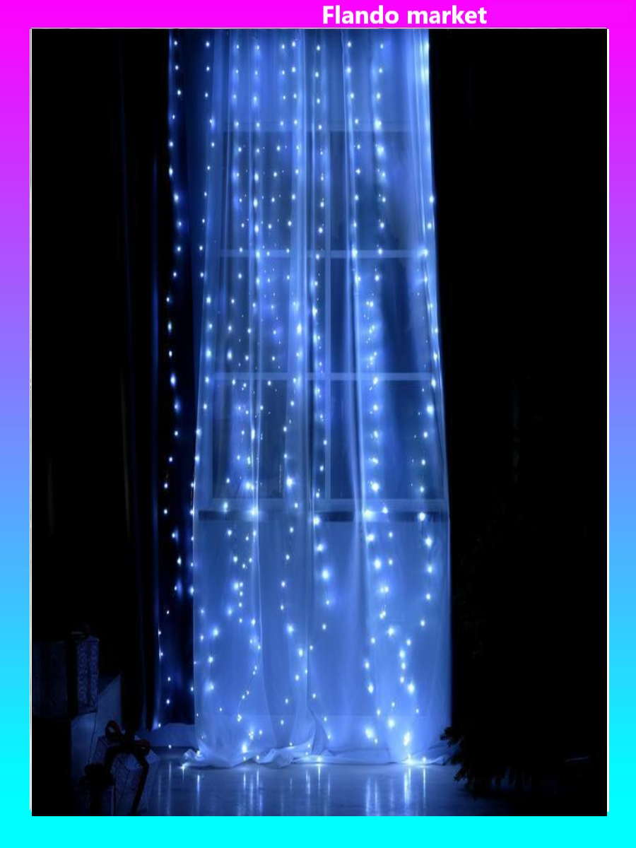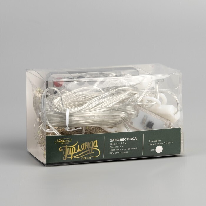 !09 Гирлянда «Занавес» 2.8 x 3 м роса на крючках, с пультом, IP20, серебристая нить, 300 LED, свечение белое, 8 режимов, USB