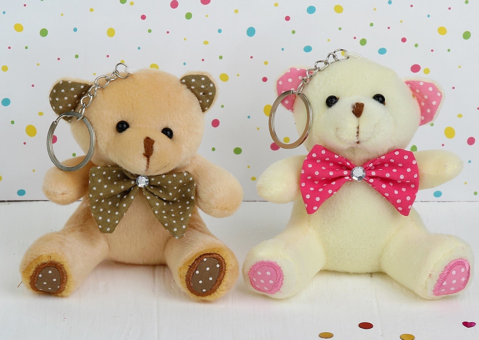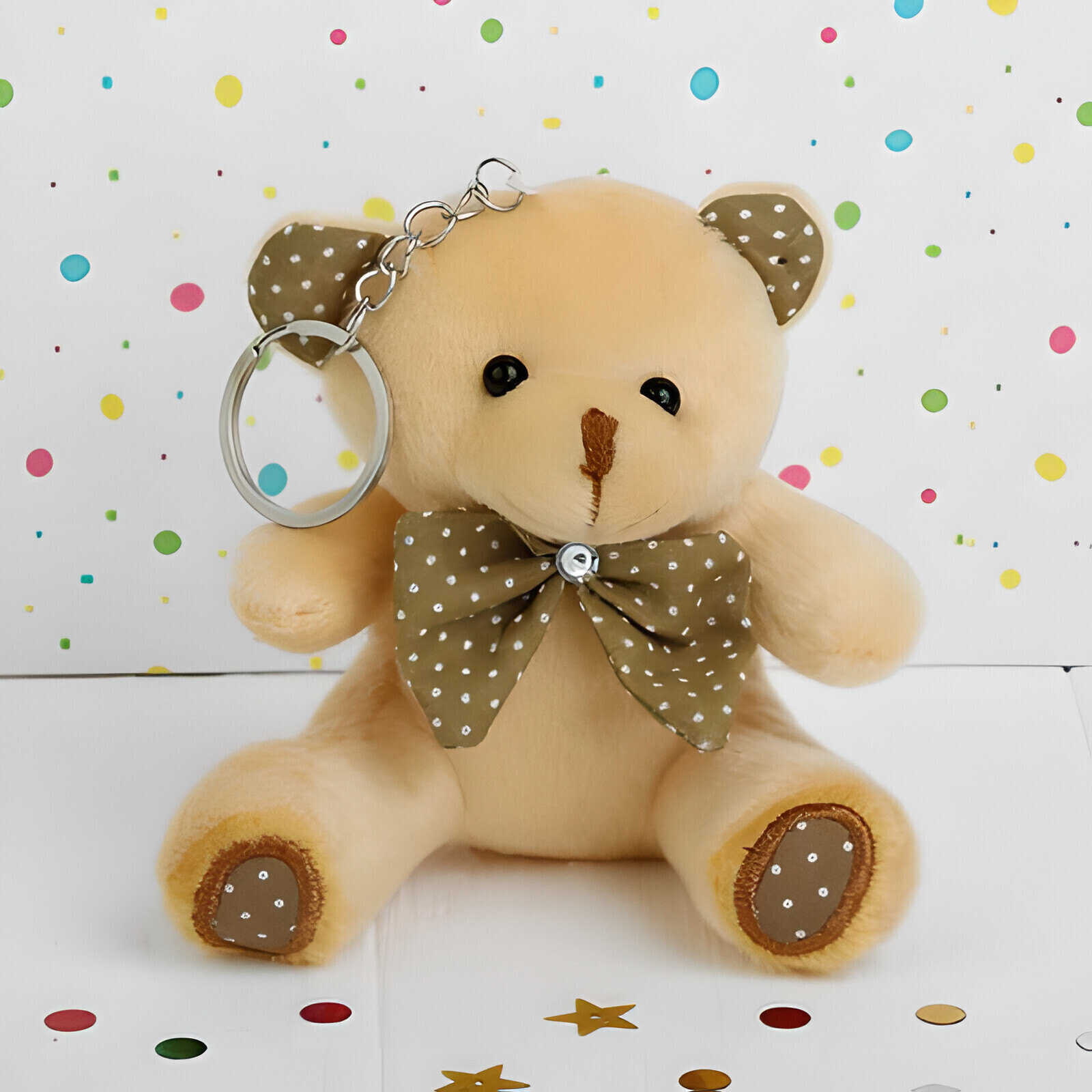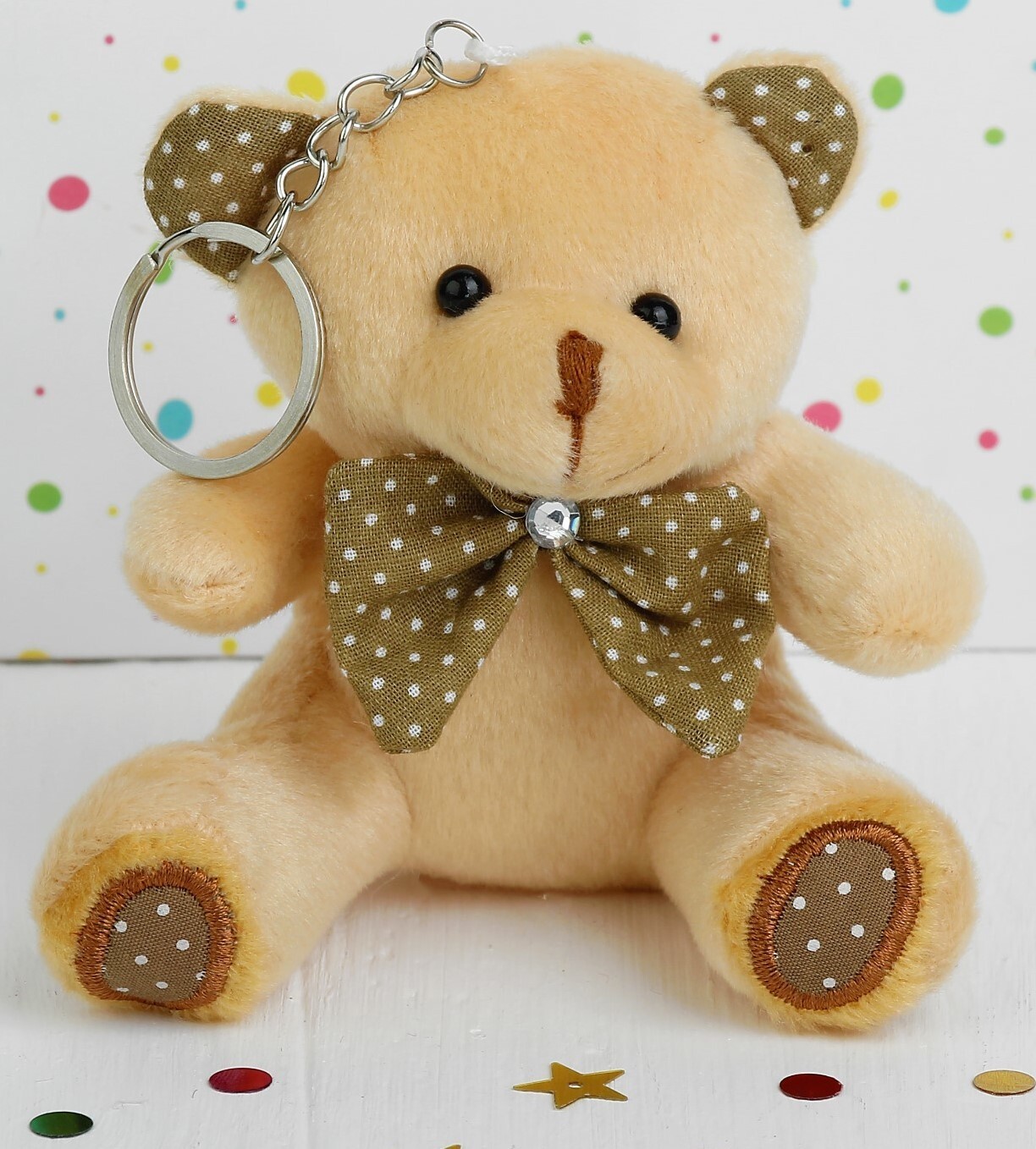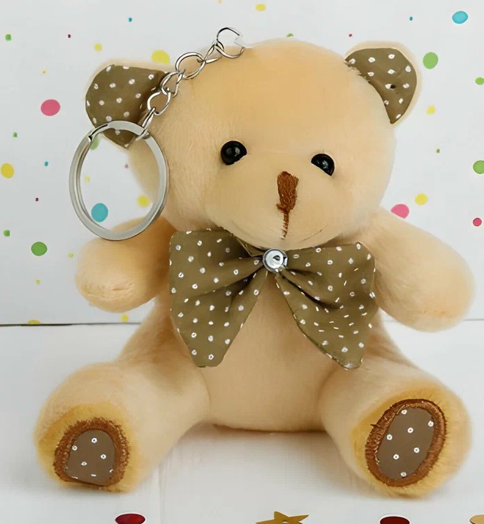 !09 Плюшевый игрушка-брелок «Мишка», бант в горошек, 10 см. цвет светлый беж