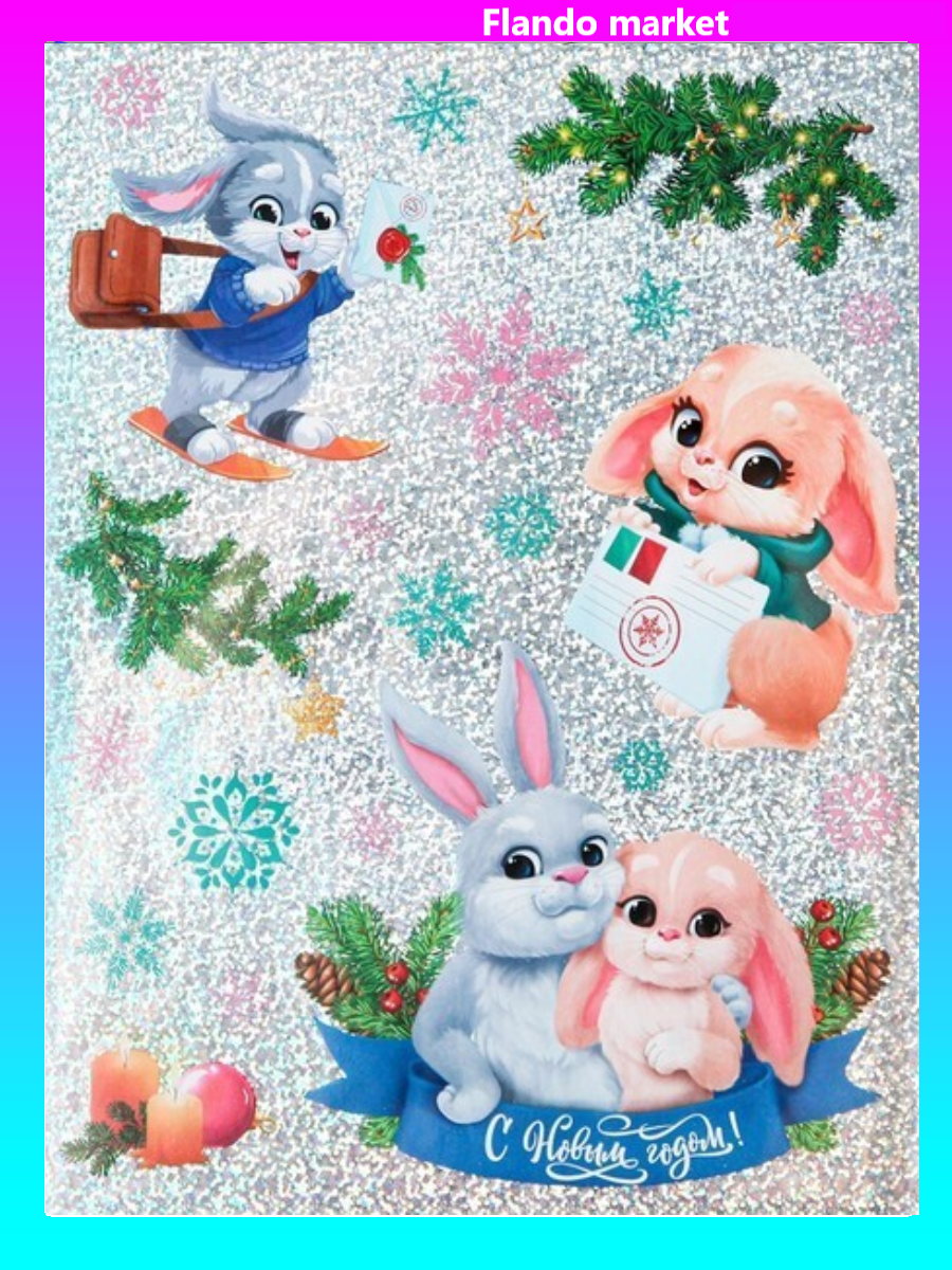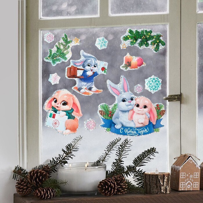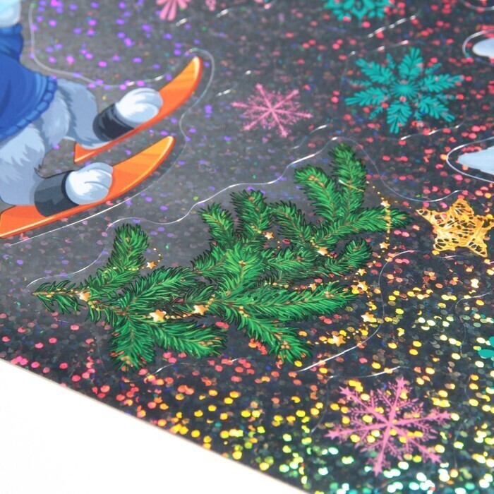 !09 Набор 2 штуки: Интерьерная наклейка голография «Новогодний экспресс», 21 x 29,7 см.