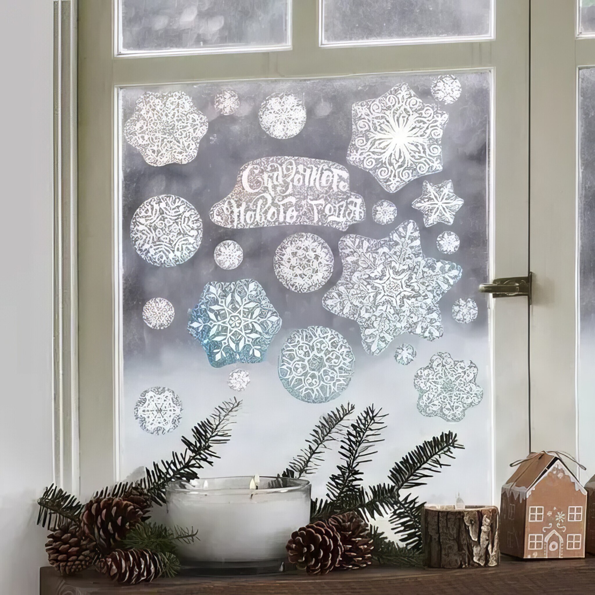 !09 Интерьерная наклейка 2 штуки голография «Снежинки», 21 x 29.7 см.