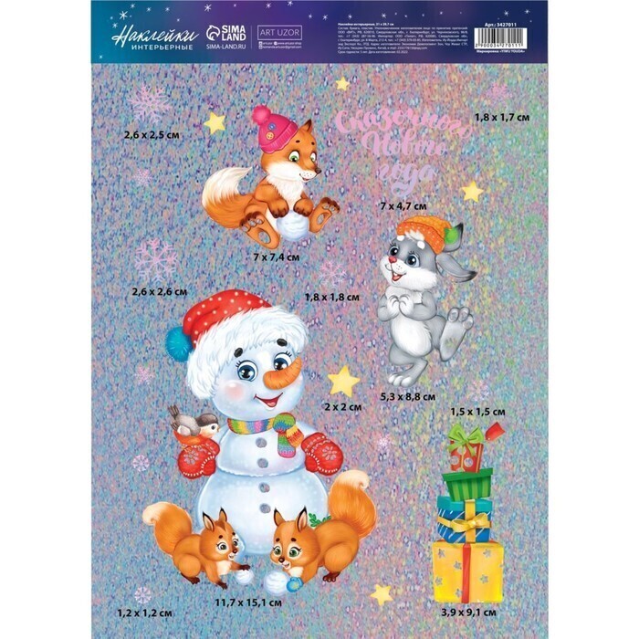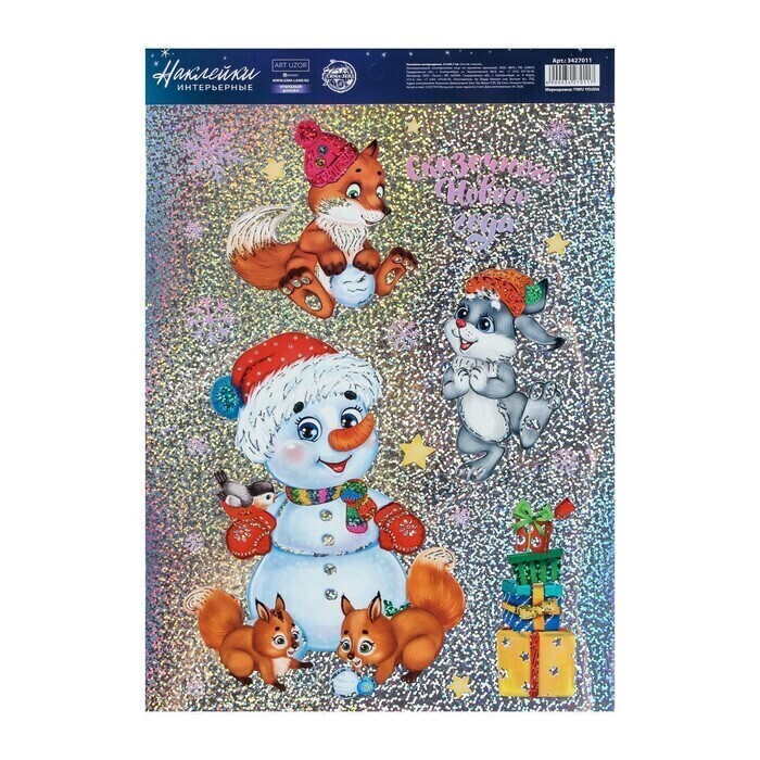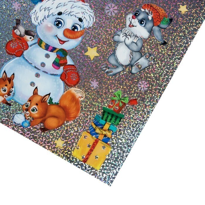 !09 Набор из 2-х штук: Интерьерная наклейка голография «Весёлый Новый год», 21 х 29,7 см.