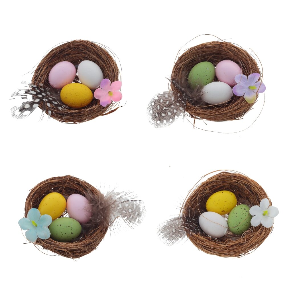 Изделие декоративное "Гнездо пасхальное" (блок 12 шт), L5,5 W5 H2 см, 4в.