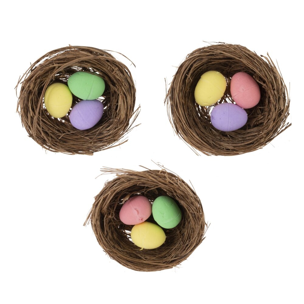 Изделие декоративное "Гнездо пасхальное" (блок 12 шт), L6 W6 H2 см, 3в.