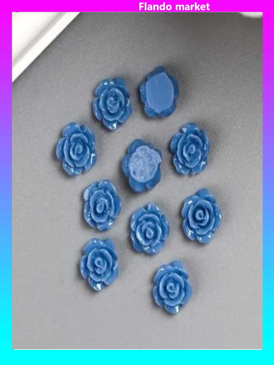 !09 Кабошон "Роза", 6 штук цвет синий 10 мм