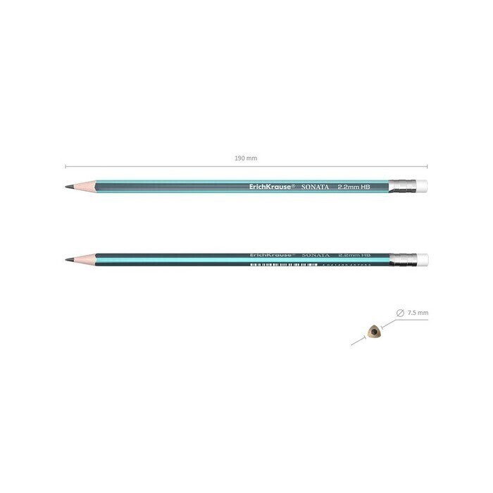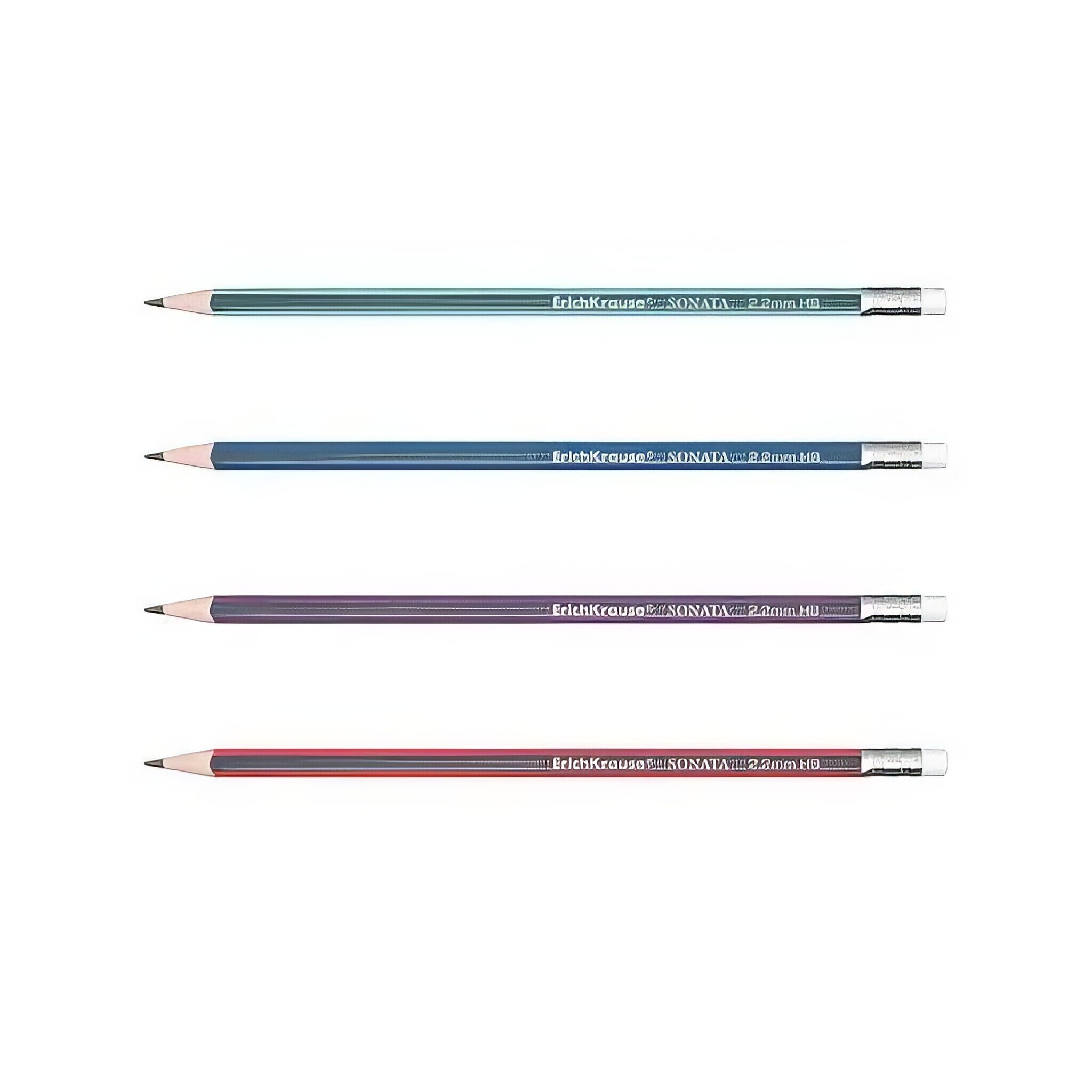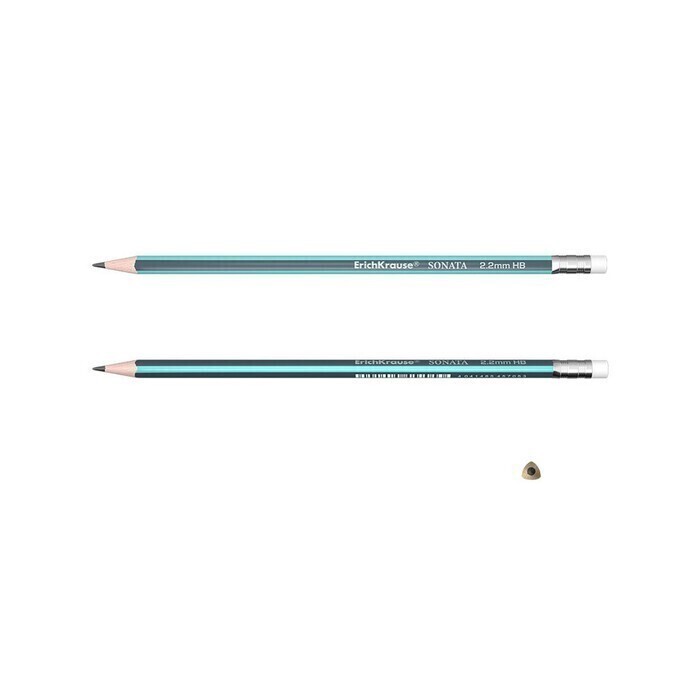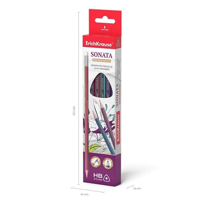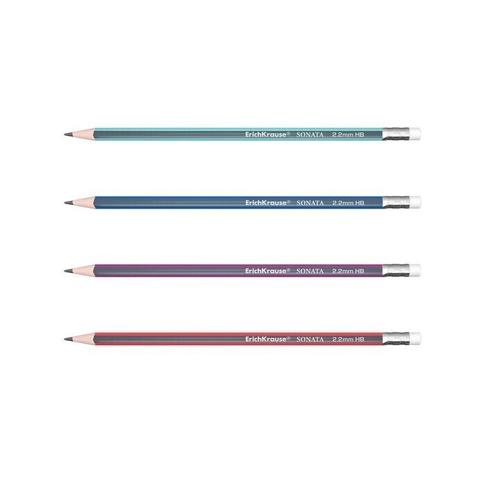 !09 Карандаш (набор 6 штук) чернографитный с ластиком НВ, 2.2 мм, ErichKrause Sonata, трёхгранный, из отборной древесины, микс