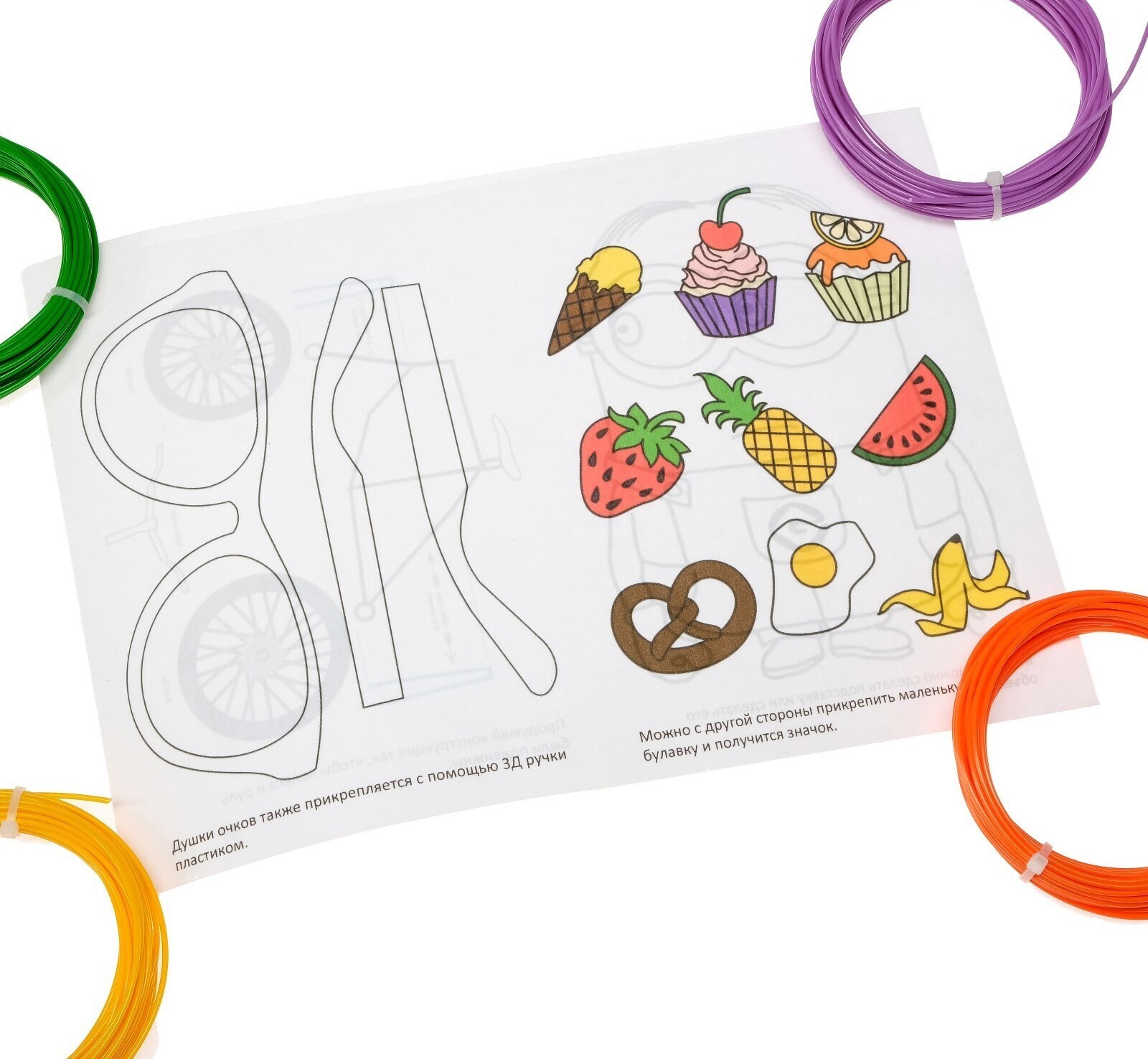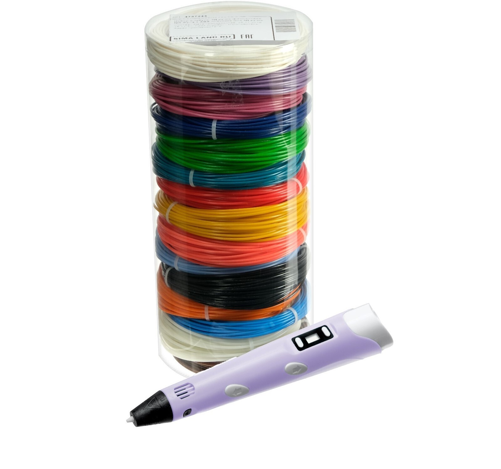 !09 Комплект в тубусе 3Д ручка с дисплеем фиолетовая + пластик ABS 15 цв/10 м.+трафареты