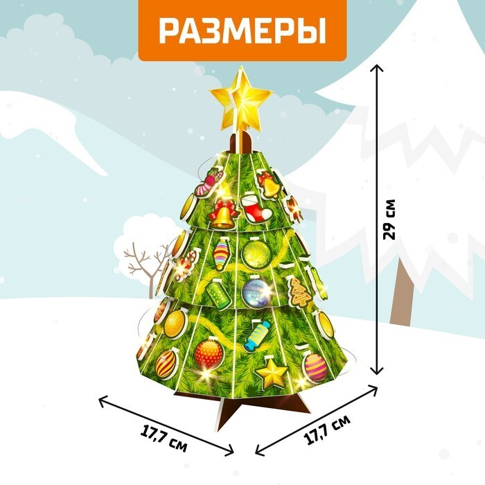!09 Конструктор 3D «Ёлочка», со светодиодной гирляндой, 67 деталей
