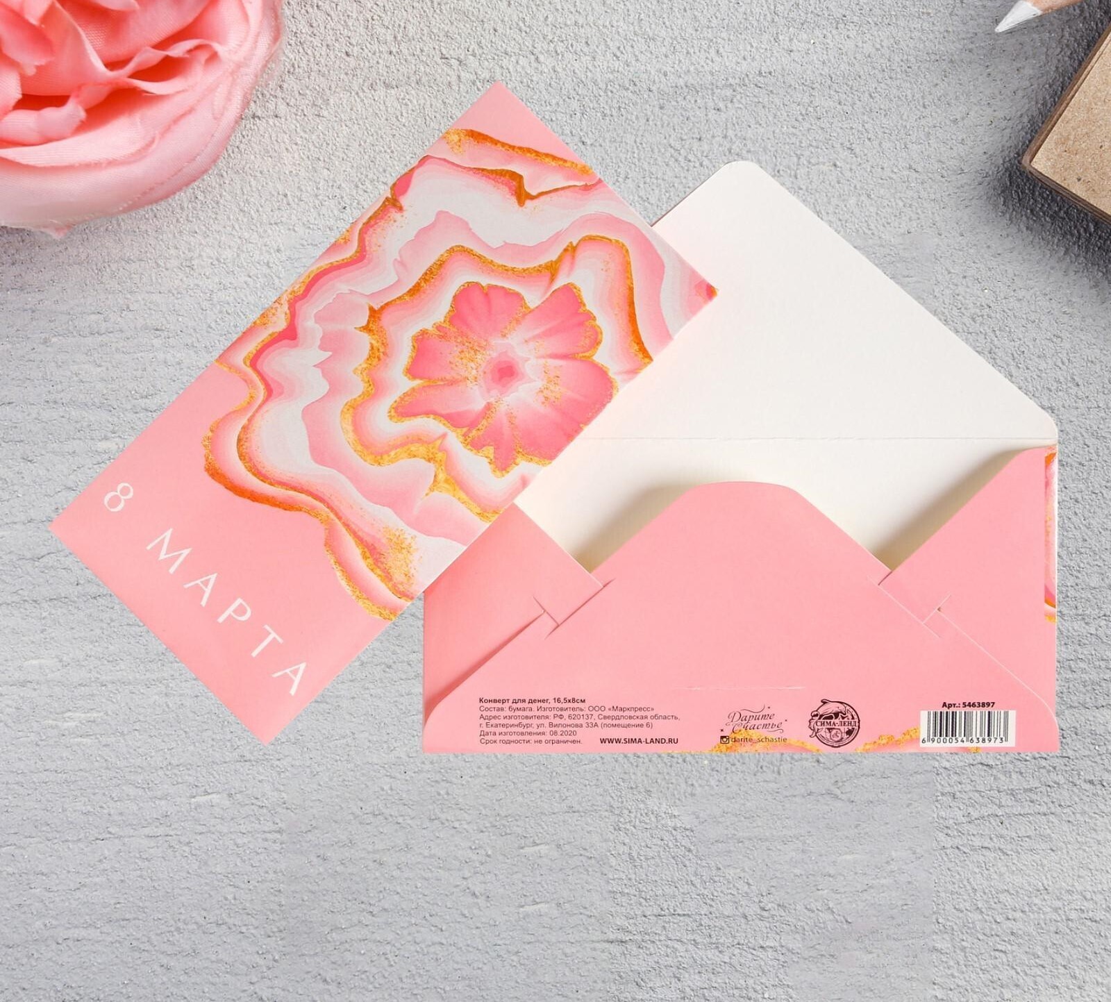 !09 Конверт для денег (набор 2 штуки) «8 марта», мрамор, 16,5 х 8 см.