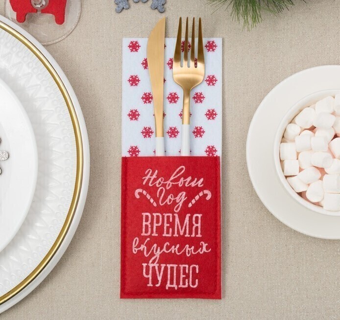 !09 Конверт для столовых предметов «Время чудес» 8,5х22 см, 100% п/э, фетр