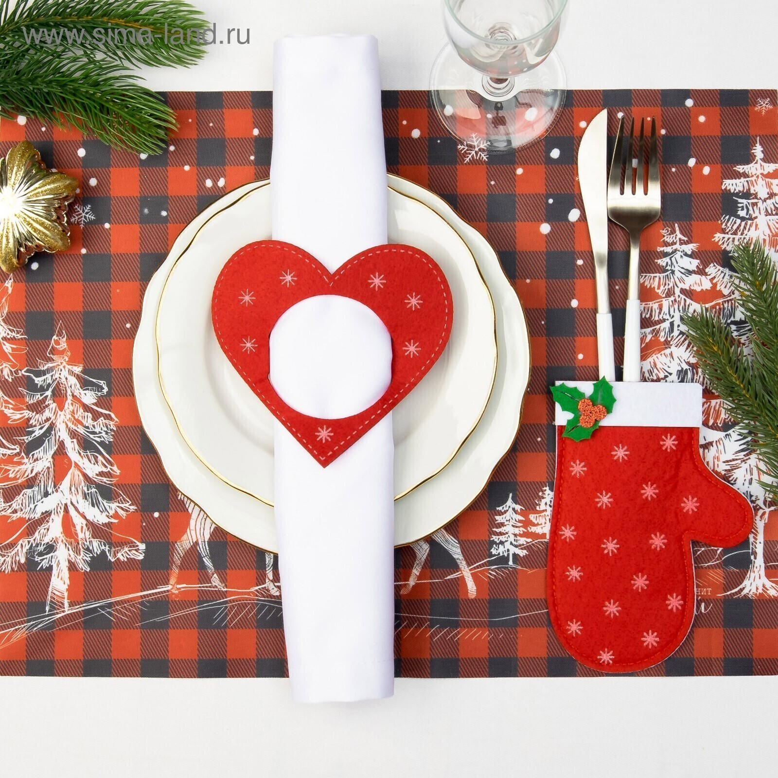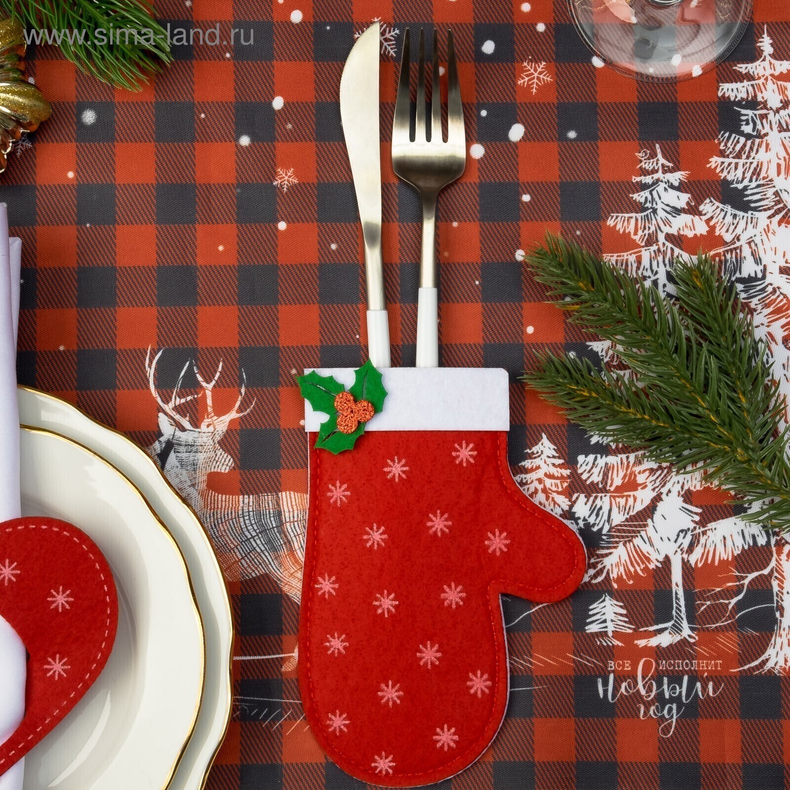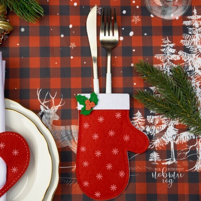 !09 Конверт для столовых приборов 5 штук «Варежка» 10х15 см, 100% п/э, фетр